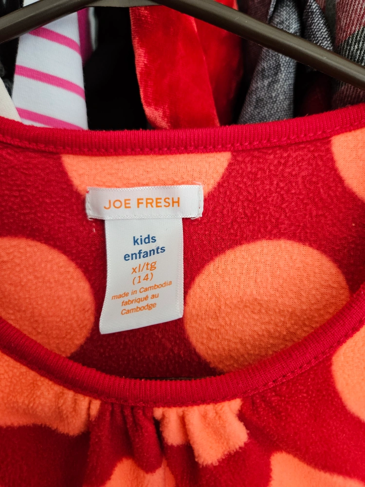 Cute Joe Fresh kids dress or pjs in excellent condition! It's a size XL (14) and features a fun red and orange polka dot pattern. Perfect for playdates or casual outings!