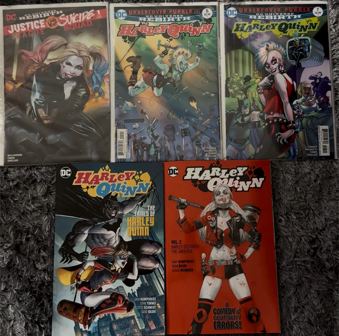 Selling a collection of Harley Quinn comic books from the DC Rebirth series! Includes Justice League vs Suicide Squad, Undercover Punker issues, and 'The Trials of Harley Quinn'. Great for any comic book fan or collector