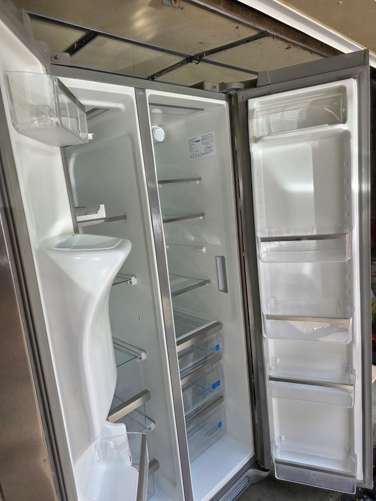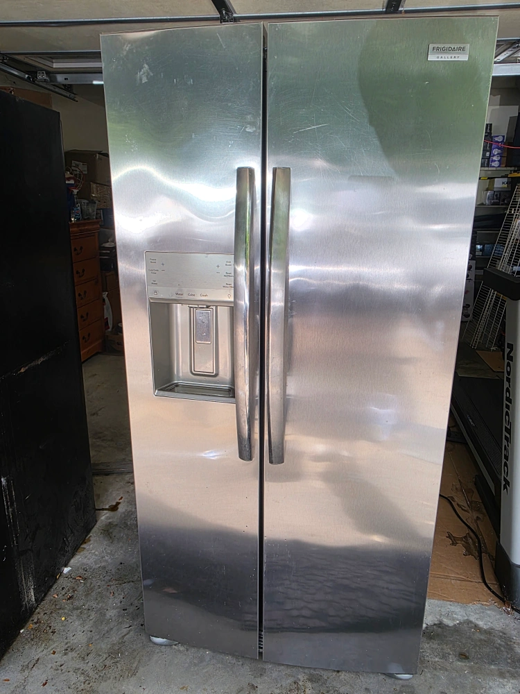 Selling a Frigidaire Gallery refrigerator in stainless steel. It's a side-by-side model with a water and ice dispenser. Great for any kitchen!