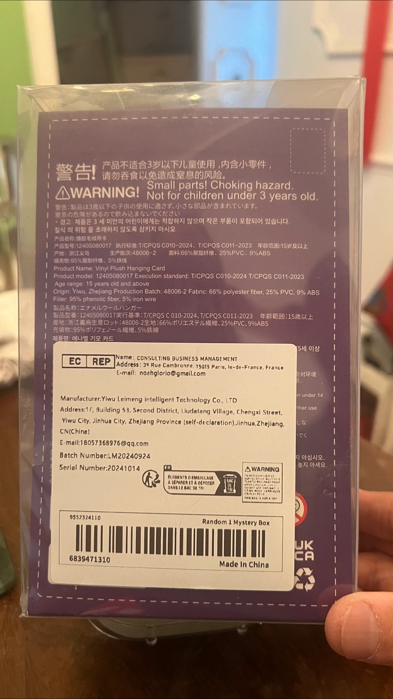 Selling a brand new Wings of Fortune vinyl plush hanging card! It's still in its original packaging. It's suitable for ages 5 and up. The batch number is LM20240924 and the serial number is 20241014