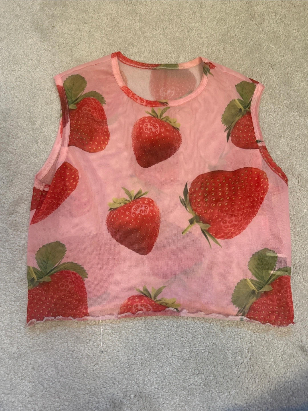 Cute strawberry print mesh top! Perfect for layering or wearing on its own. It's in great condition!