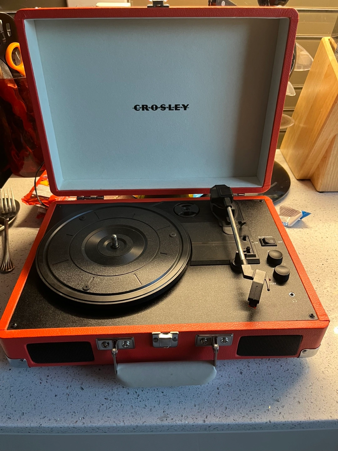 Selling a Crosley turntable in a vibrant red colour! It's in great condition and has Bluetooth connectivity, so you can easily play music from your phone or other devices. Perfect for enjoying your favourite vinyl records!