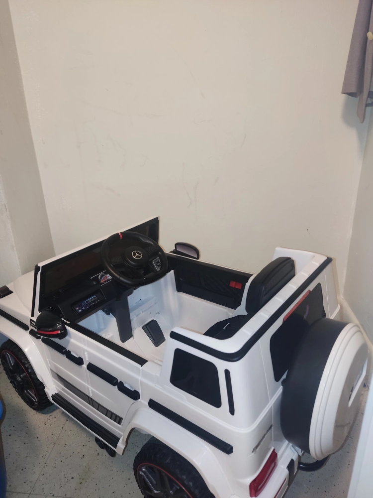 Selling a white Mercedes-Benz G-Wagon kids ride-on car! it's only 6 months old and my sons LOVED It! but we are leaving NYC and have to sell it