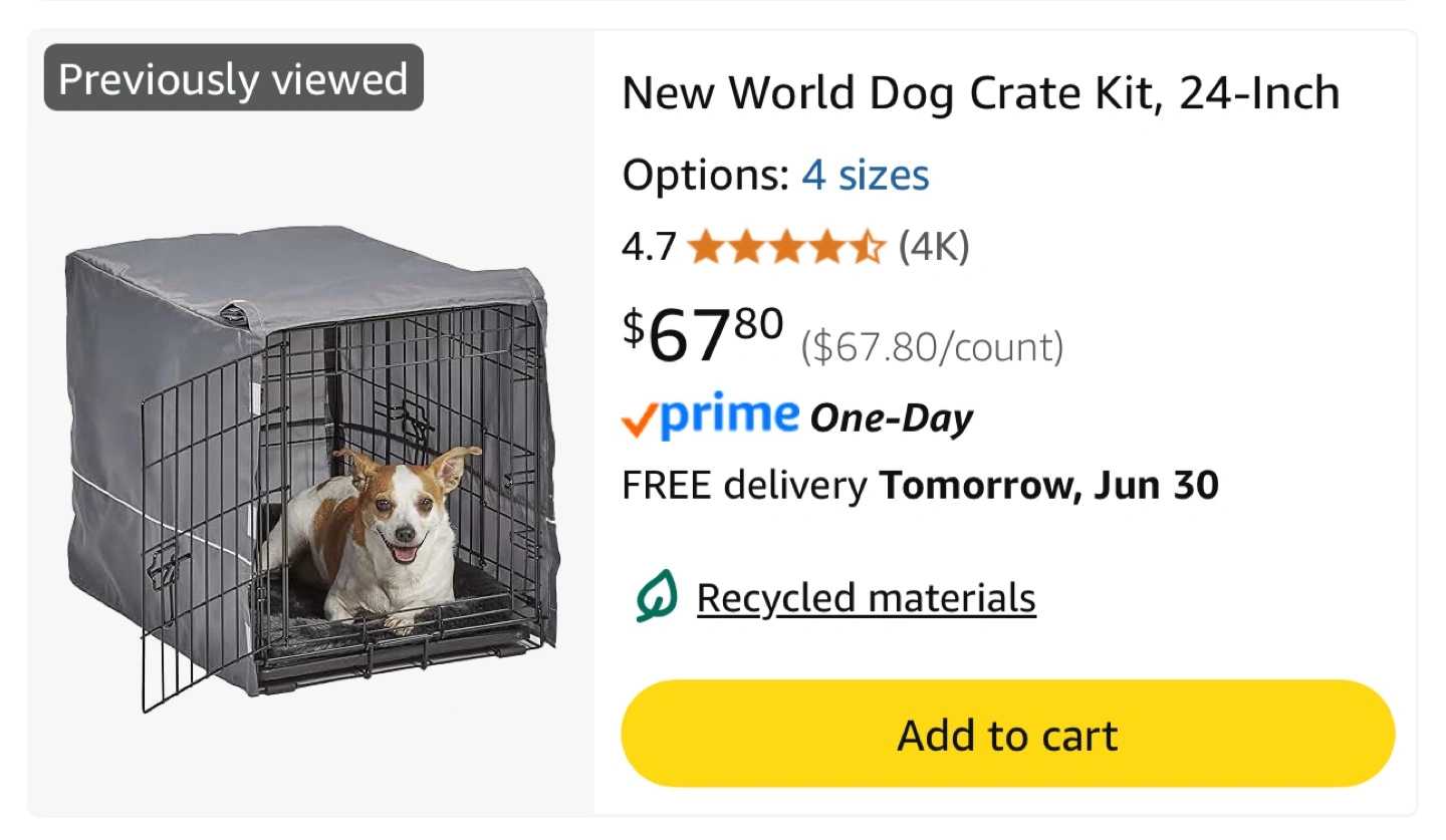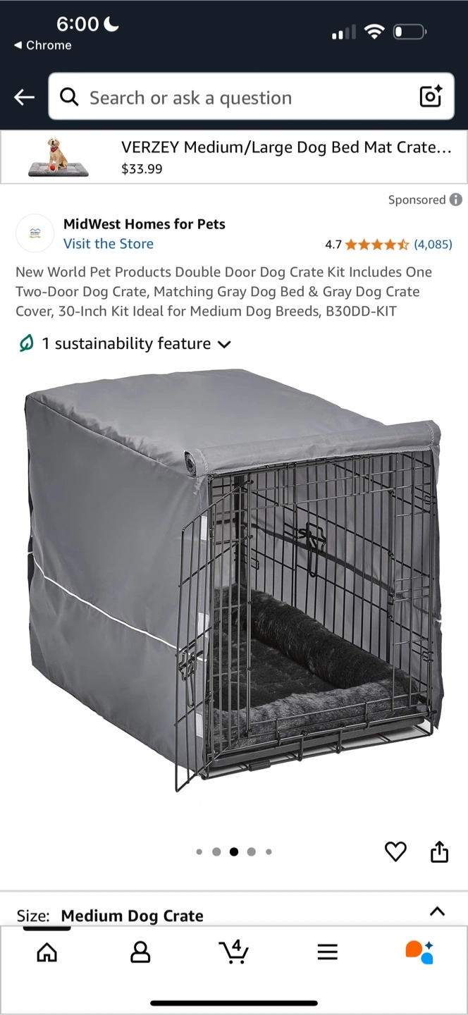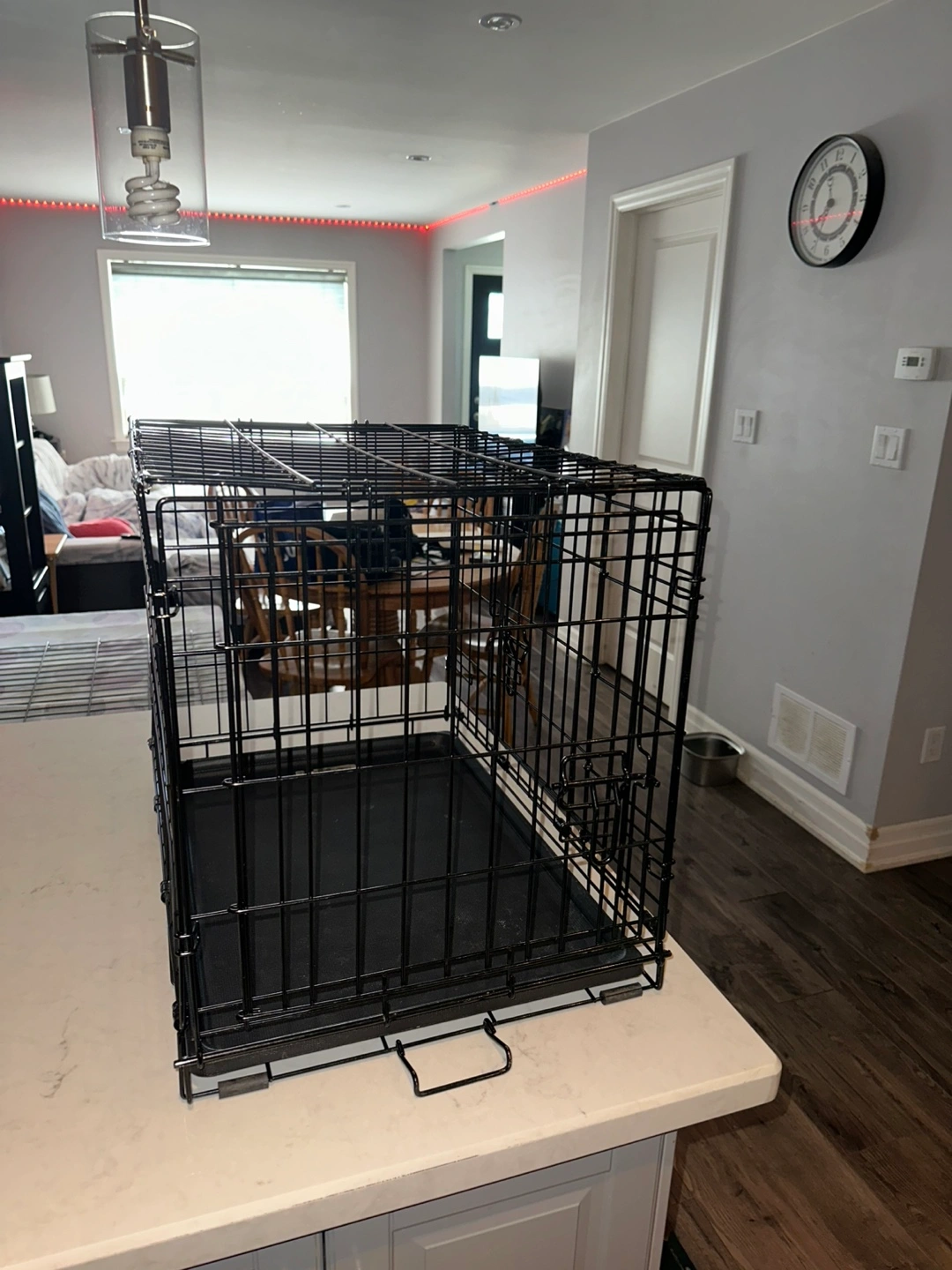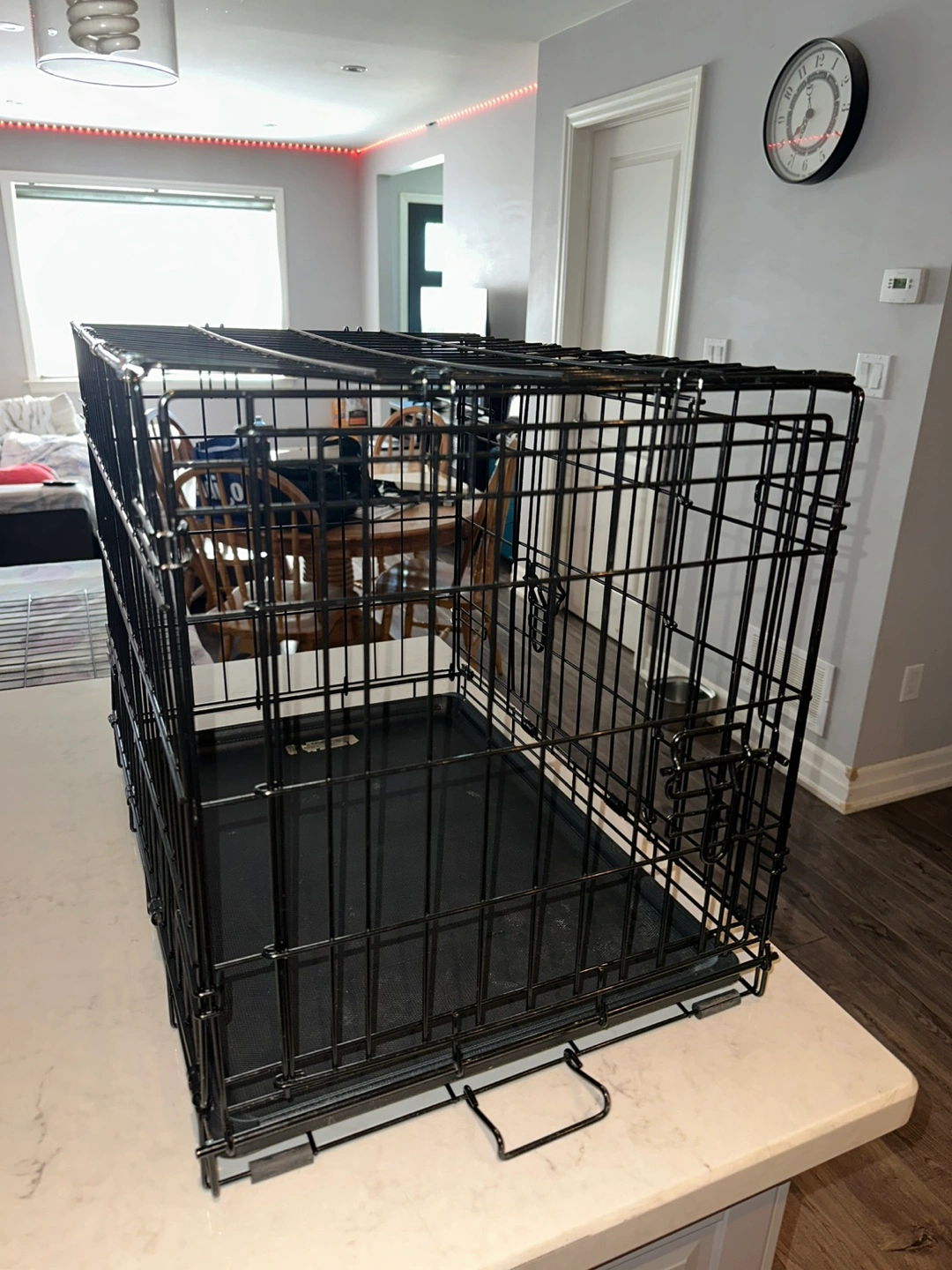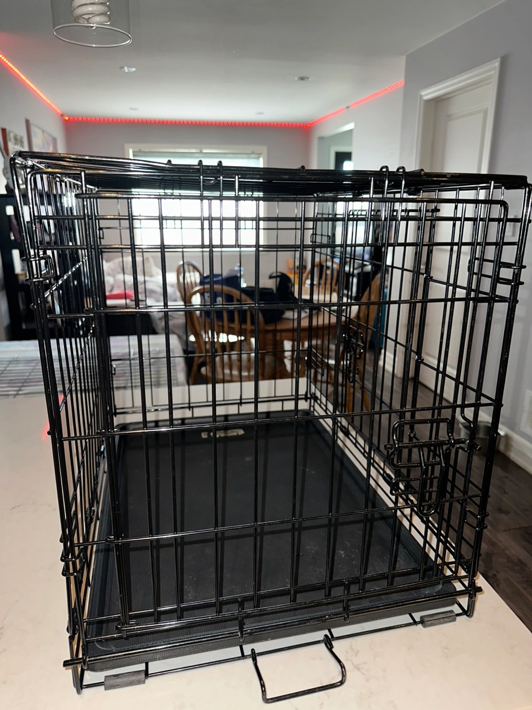 Selling a small to medium size New World dog crate. 24 L x 16 W x 18 H (are the approx measurements). It’s in great condition, we took good care of it. Only had it since March. Our little guy used it when he was a puppy & just slept in it a few hours at a time. Comes with cover and bed as pictured in the sale ad. $30 obo.