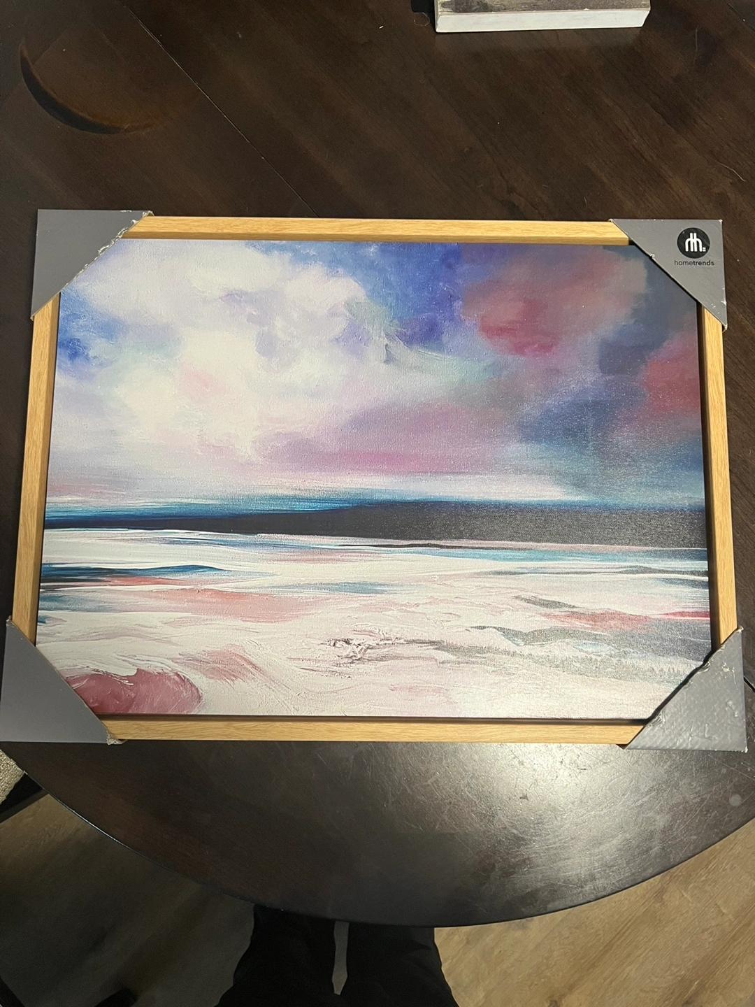 99Selling a hometrends framed wall art piece. It measures 24 inches wide, 1.5 inches deep, and 18 inches high (60.9 cm x 3.8 cm x 45.7 cm). Great for adding a touch of colour to any room!