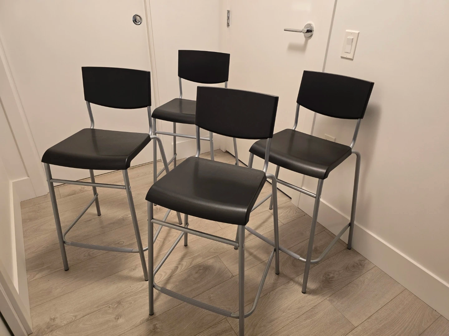 4 x Black & Silver Stacking Bar Stools (IKEA)