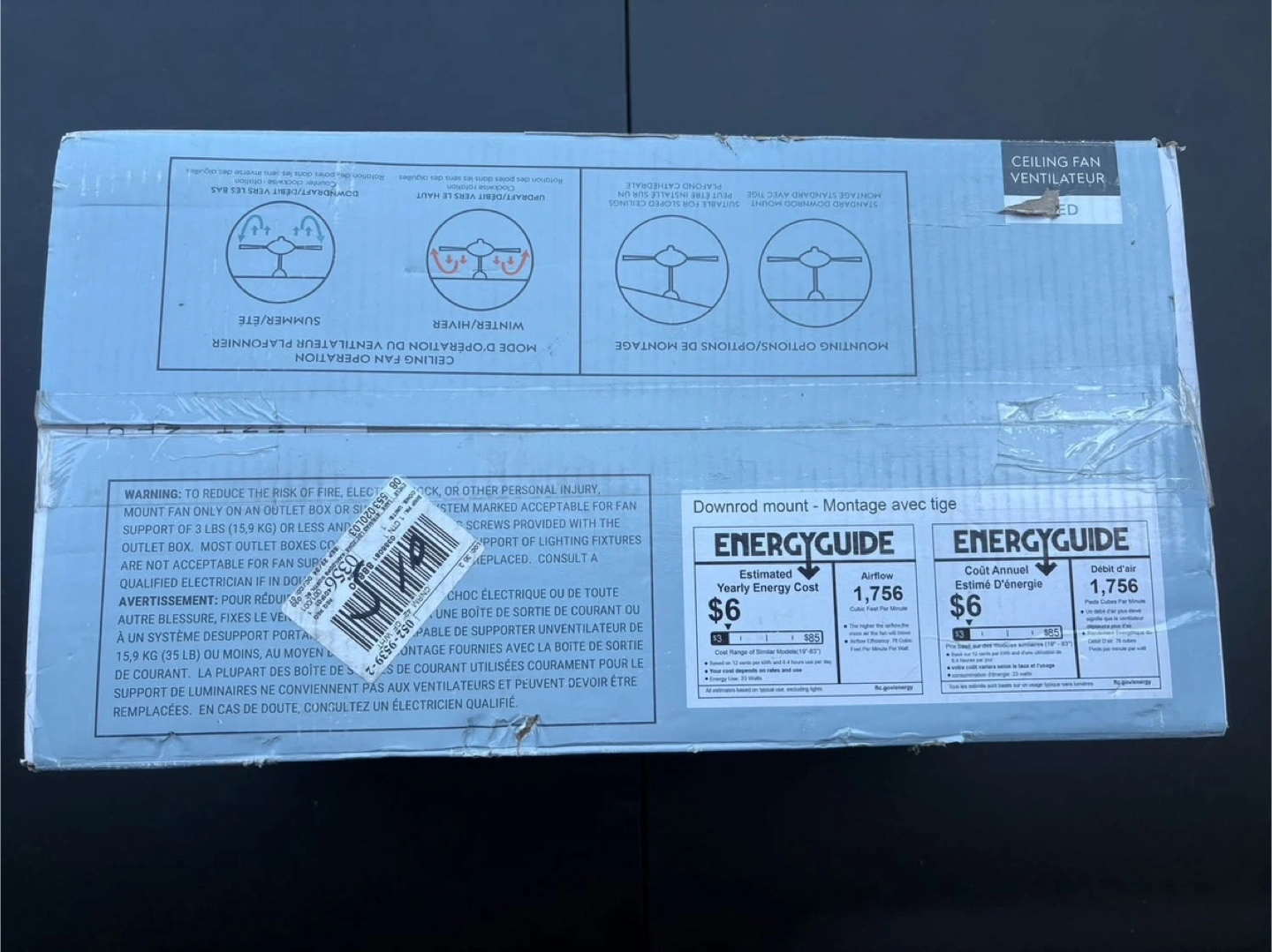 Selling a Harmonized Home 42-inch Kolt LED ceiling fan in white. It's in great condition and comes with the box and all components. This fan features an 18W LED light, operates at AC 3000K, and produces 1000 lumens. Perfect for adding a touch of style and comfort to any room!