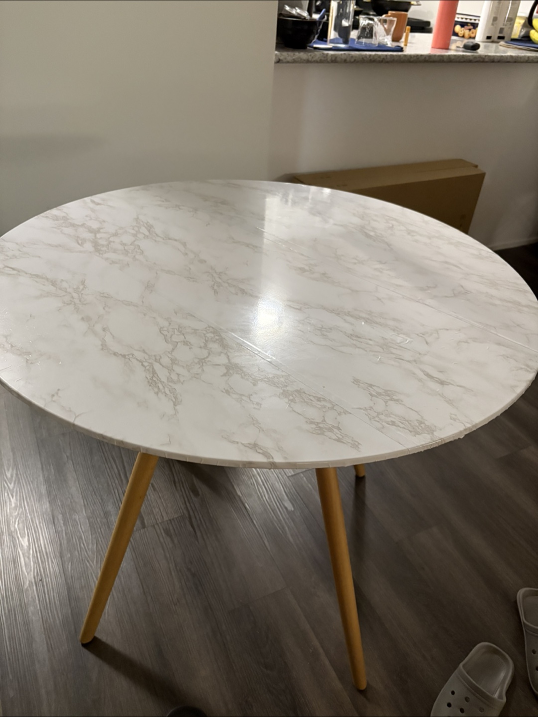 The legs can be dissembled for easy carrying. Selling because we needed a rectangular table. No issues with this one. We loved having the cool Eiffel table but it needs a new home now.