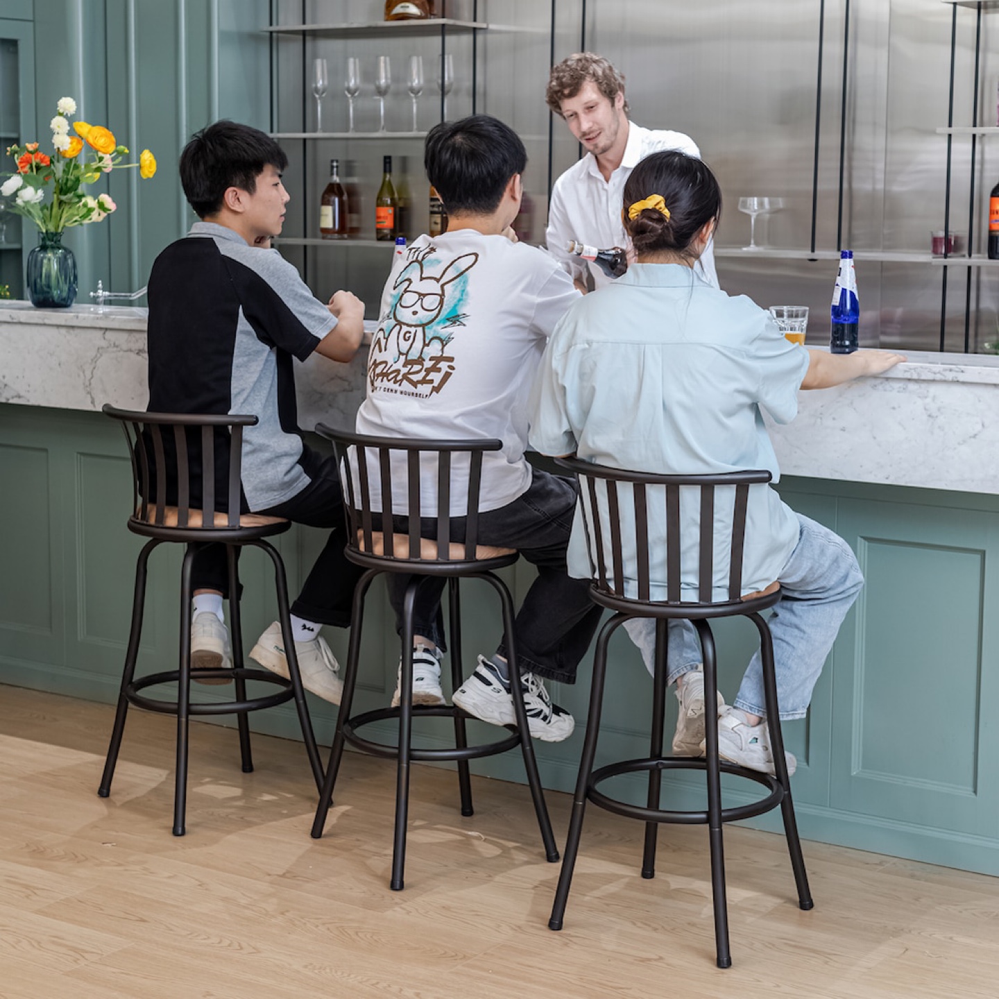 Homy Casa 24 in Set of 3 Industrial Style Swivel Counter Stools for Kitchen Island Dining Room Bistro