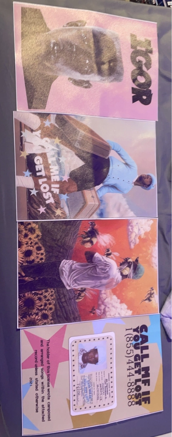 Selling a set of Tyler, the Creator posters. They feature artwork from his albums IGOR and Call Me If You Get Lost. Great for any fan!
