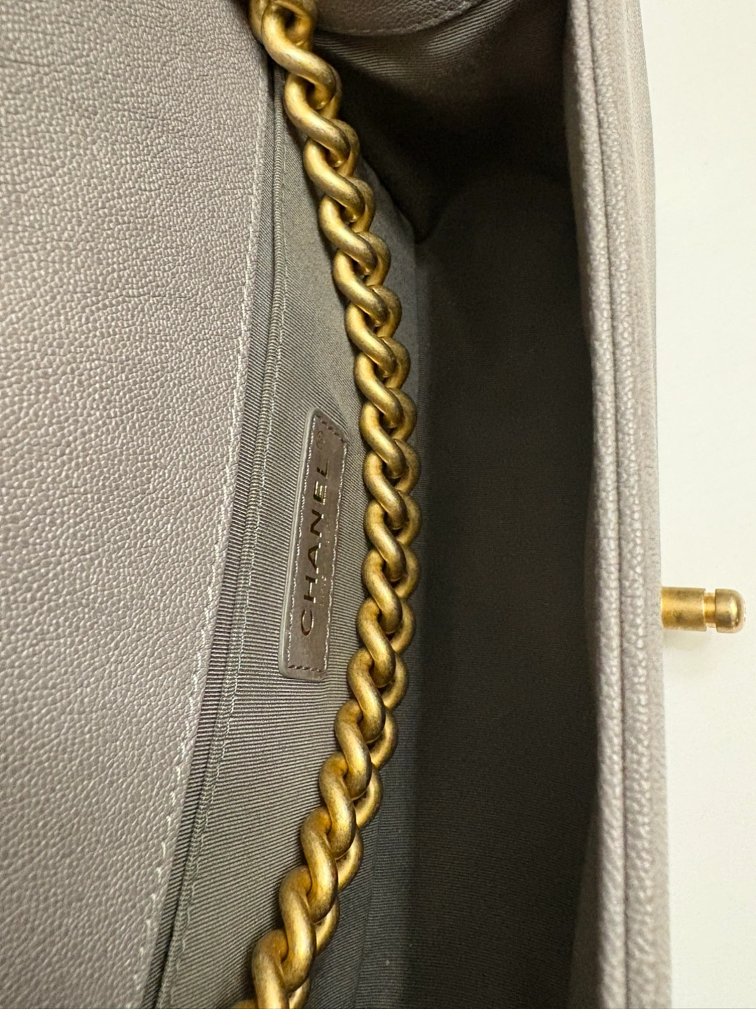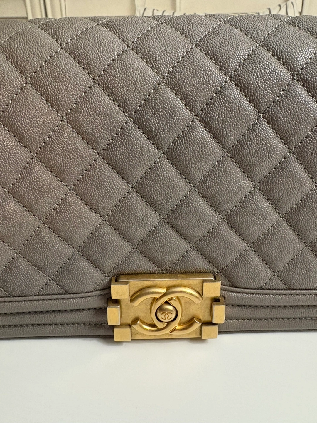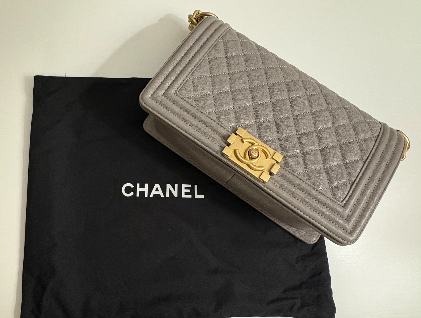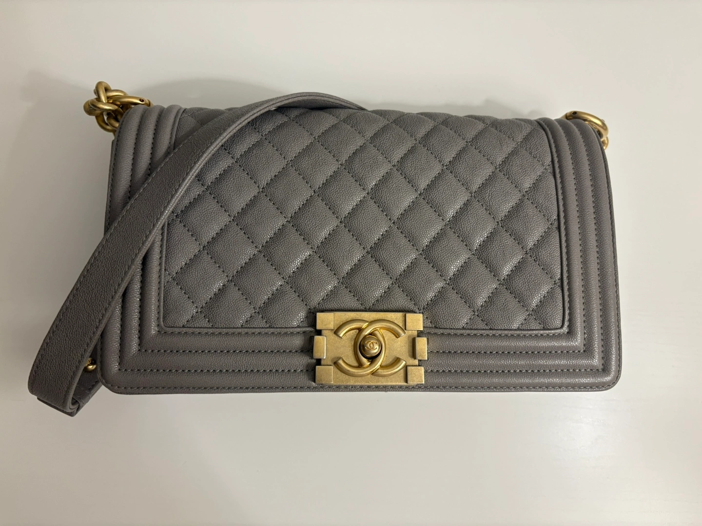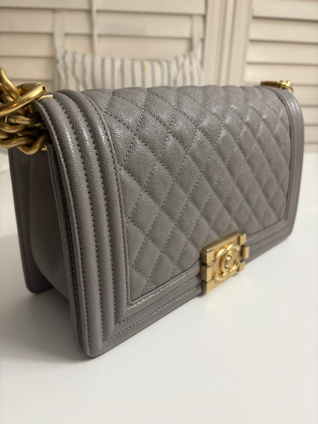 Selling a beautiful Chanel Boy Bag in a lovely grey colour! It comes with its original box and dust bag for safekeeping. This bag is in great condition and ready for a new home!