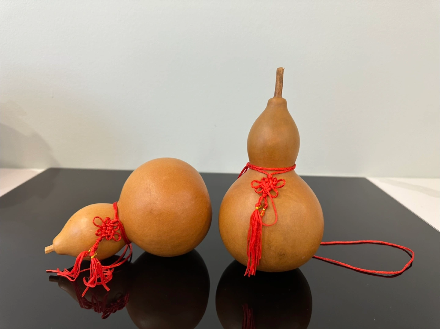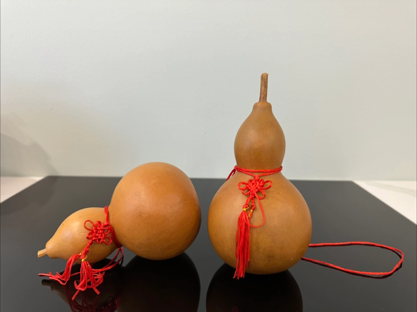 These 葫芦 (Hulu) gourd ornaments are perfect for adding a touch of traditional charm to your home decor. They feature intricate red knot detailing, symbolizing good luck and prosperity