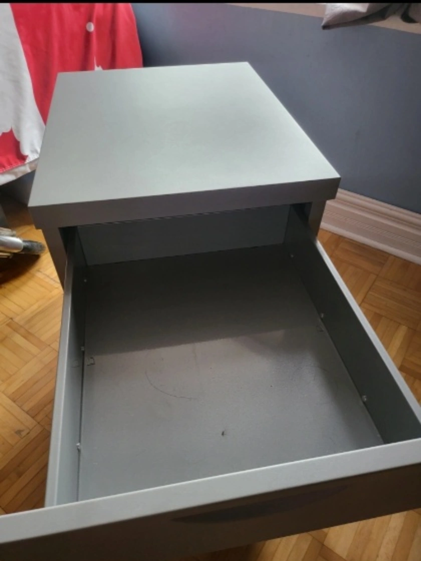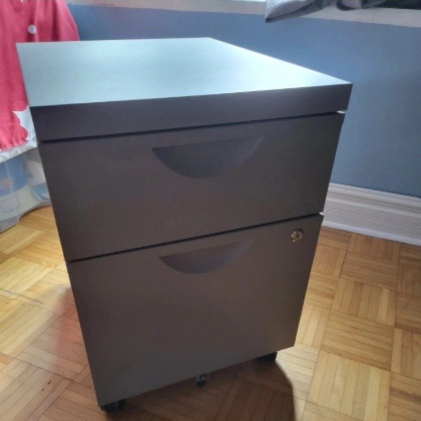 Selling a grey filing cabinet with drawers. It's in great condition and ready to use for your home or office storage needs, No keys to the lock (you can always change the lock).