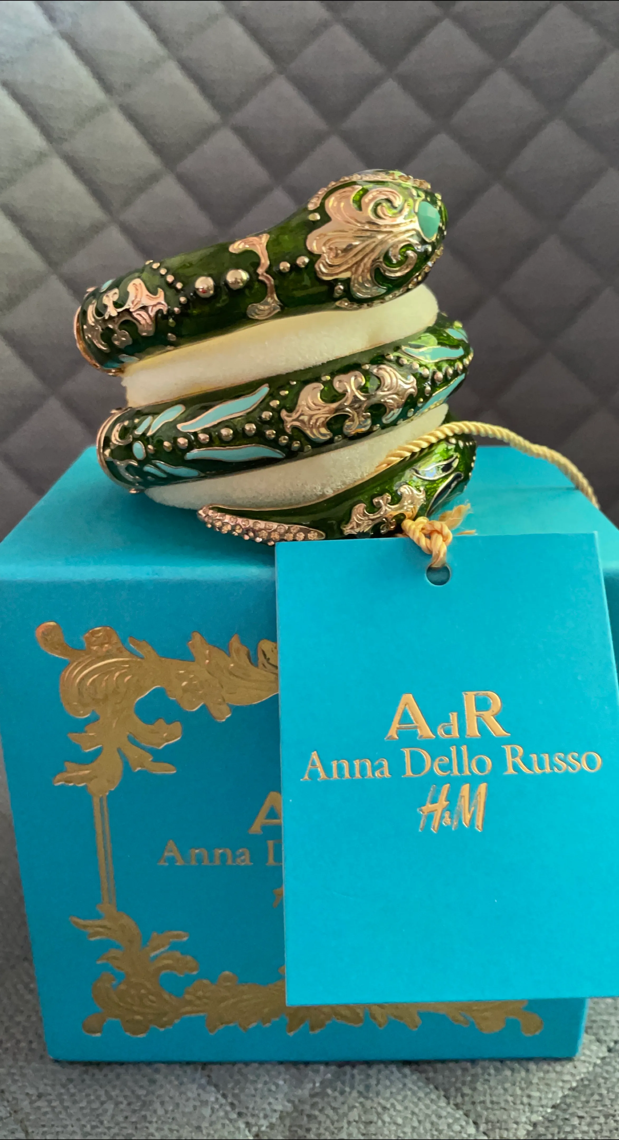 Selling a set of Anna Dello Russo for H&M bangles! These are in a beautiful green and gold colour, and come with the original box. Perfect for adding a touch of glamour to any outfit
