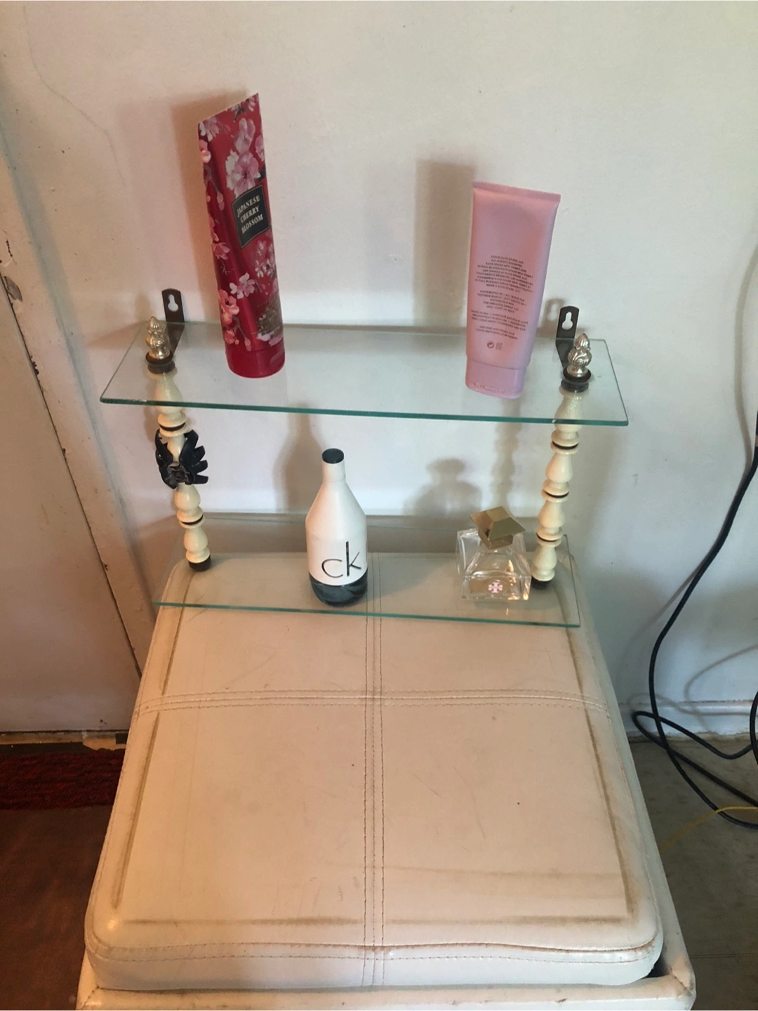 Selling a glass shelf with decorative accents. It's a great piece to display your favourite items. Perfect for adding a touch of elegance to any room $5 each