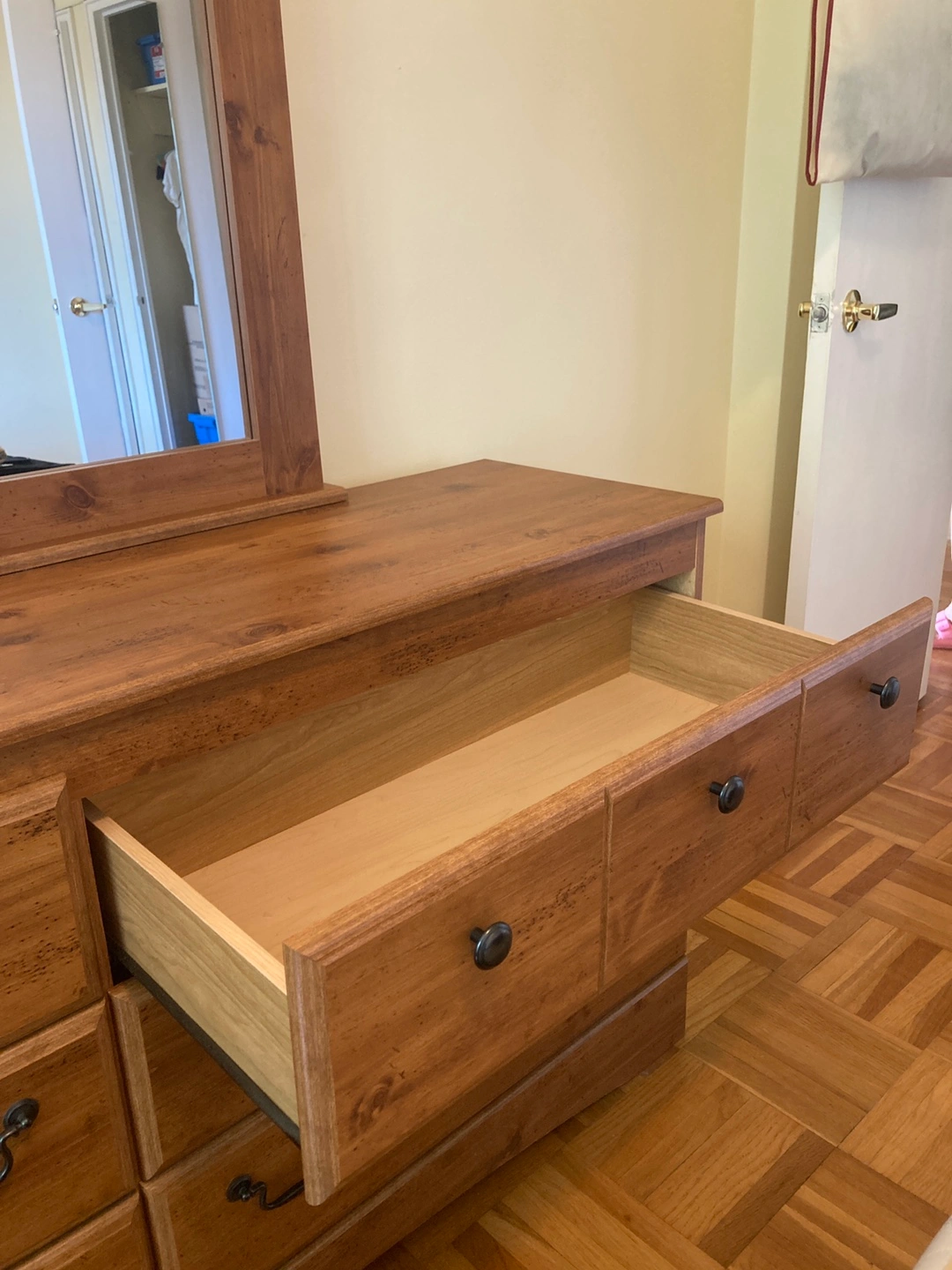 Must be able to remove dresser and mirror from three-storey walk up unit. Please ensure it fits in your vehicle.