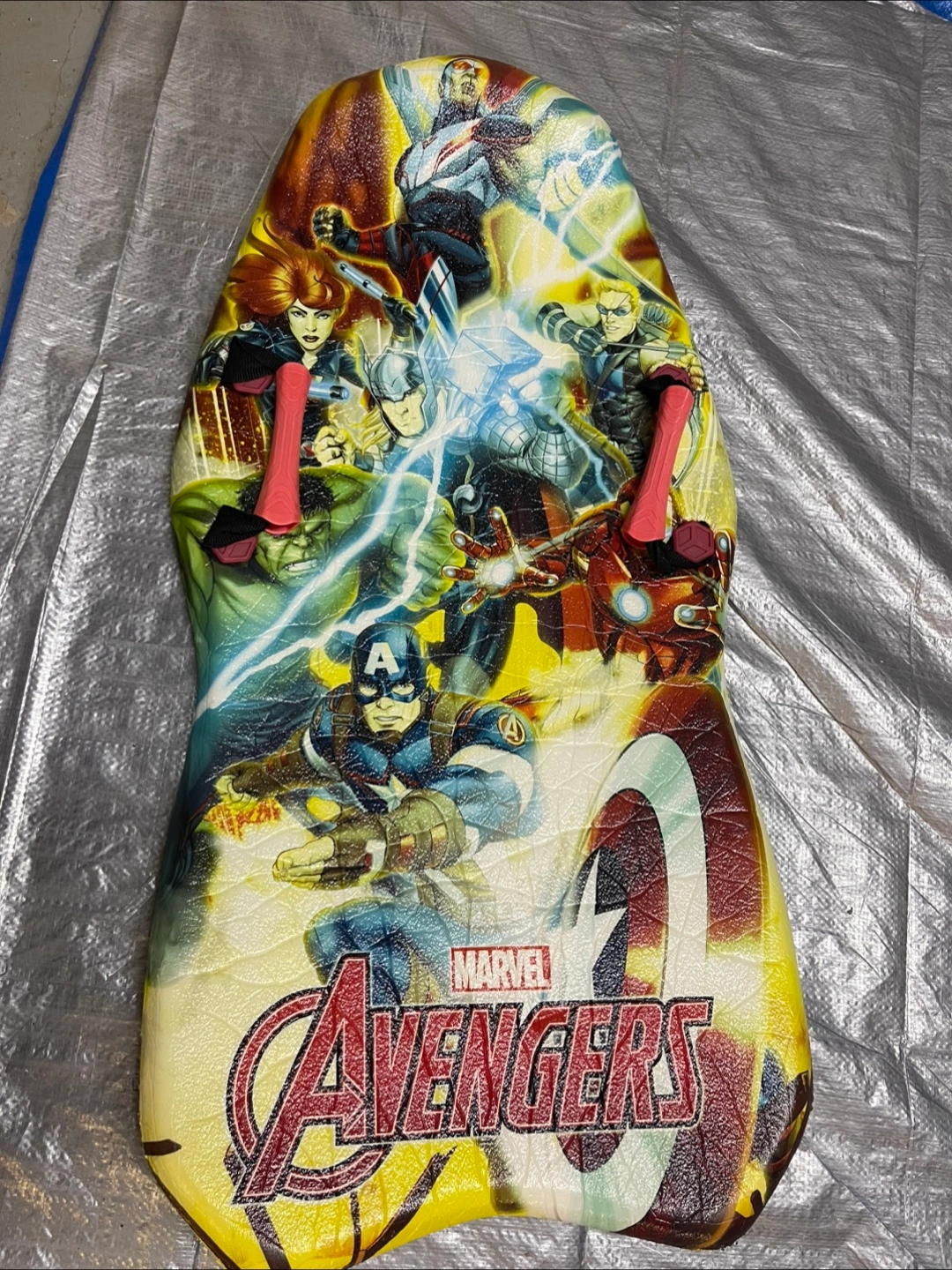 Selling a Marvel Avengers themed sled for kids! Perfect for some winter fun. It features a vibrant design with all your favourite heroes. Great for kids who love the Avengers