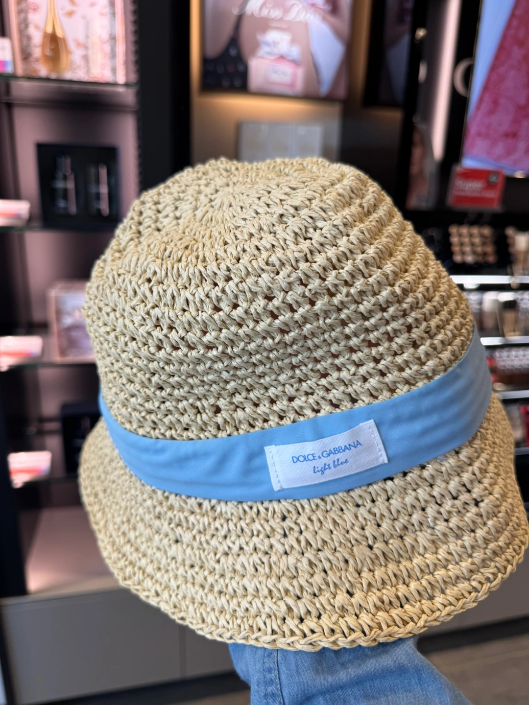 Stylish Dolce & Gabbana straw hat with a light blue band. Perfect for sunny days!it is brand new