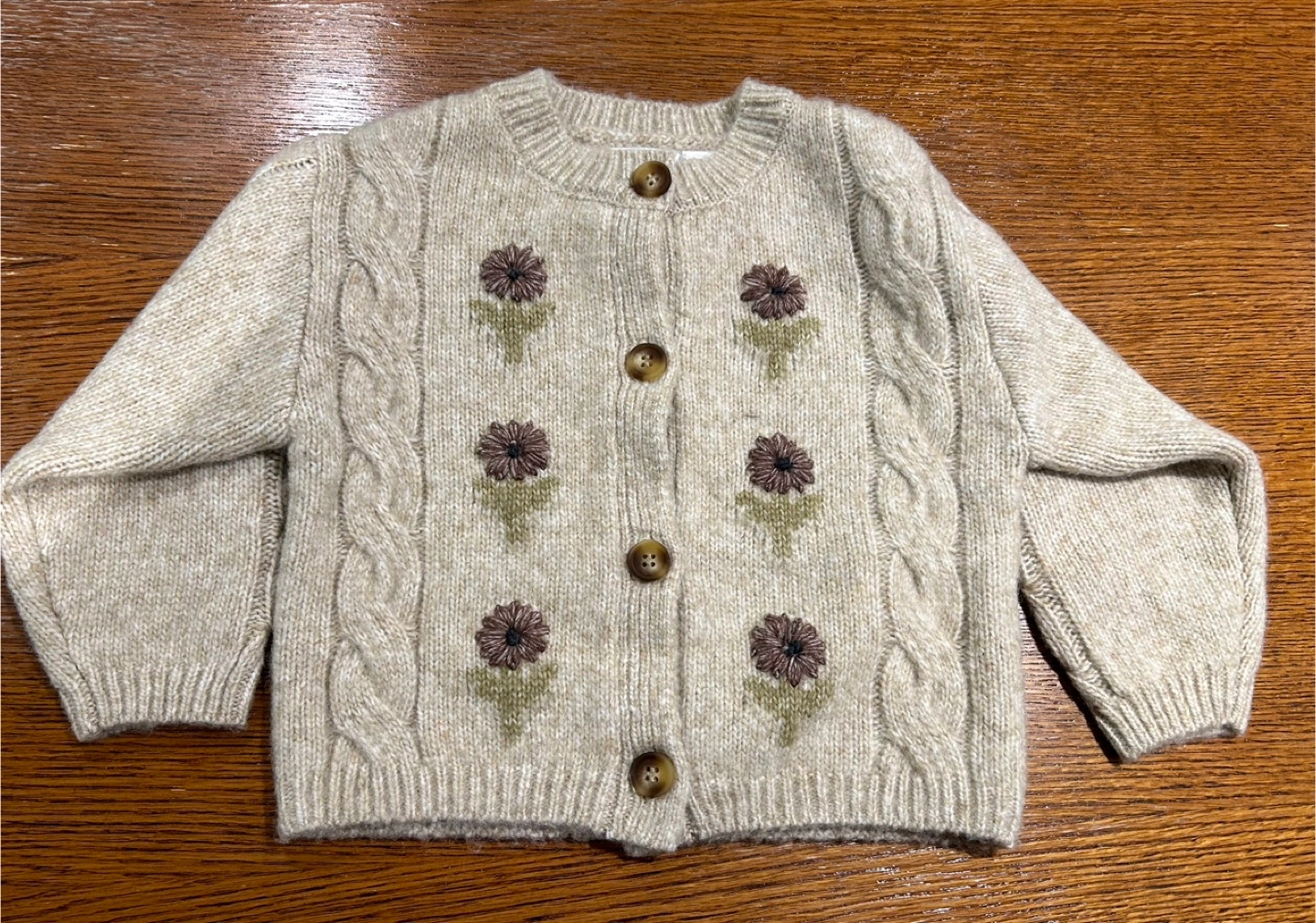 A cute Zara Baby knit cardigan in size 18-24 months. It features a lovely floral design and is in great condition. Perfect for keeping your little one warm and stylish!