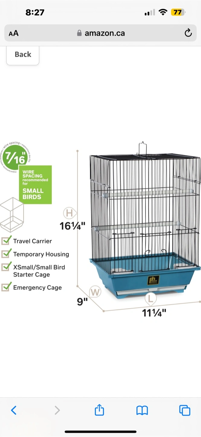 I'm selling a Prevue Hendryx small bird cage in blue! It's perfect for small birds.