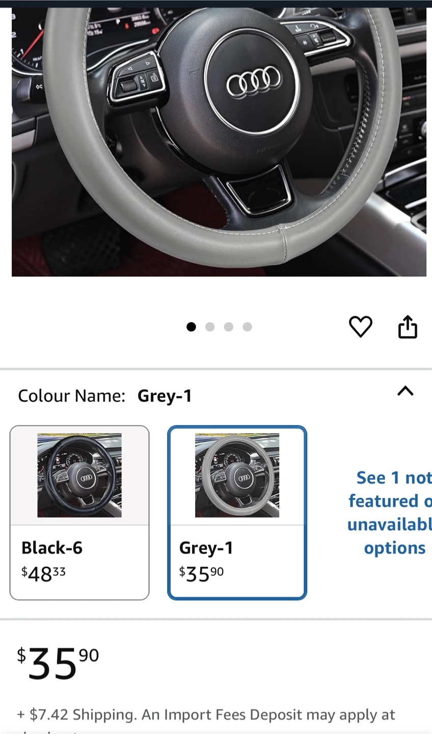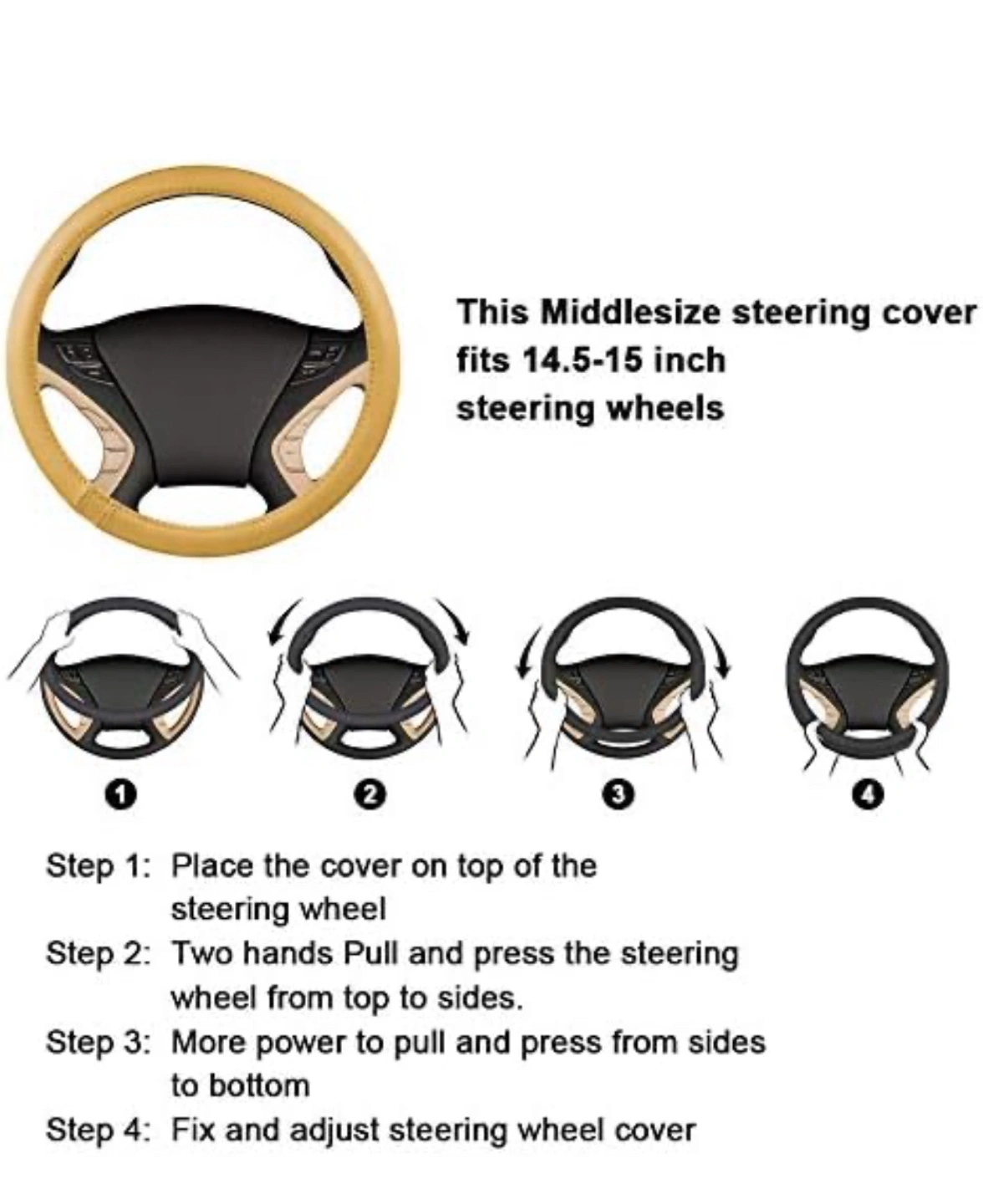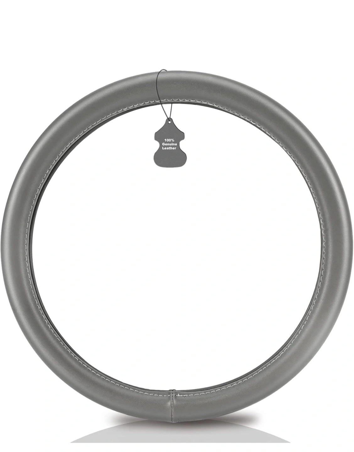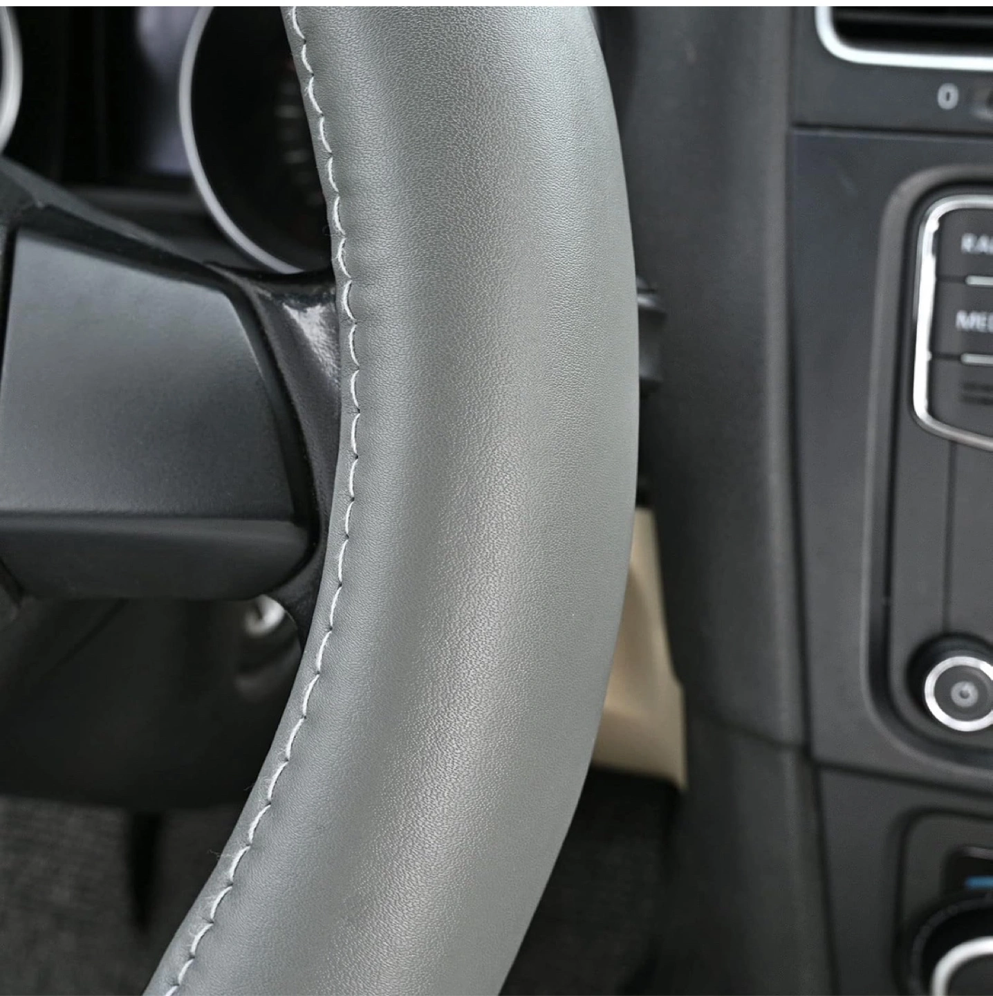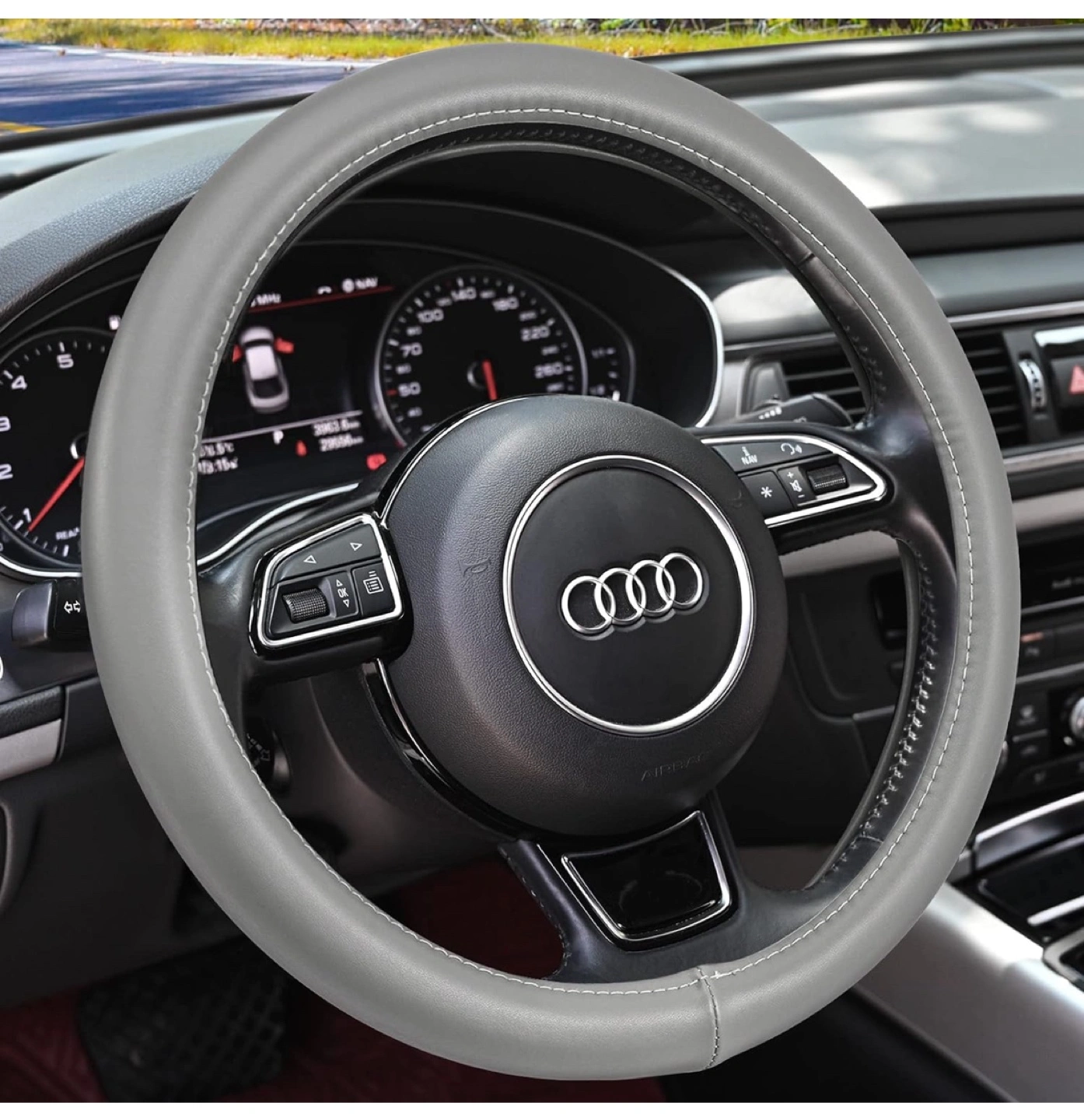 Selling a grey leather steering wheel cover! It's in great condition and ready to give your car a fresh look. Originally bought for $35.90
