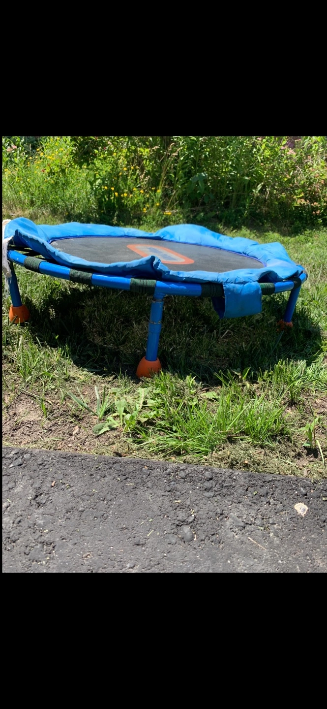 Trampoline for Kids Bounce the energy away with the Bounce Buddies Mini Trampoline! This 3’ trampoline will help your child develop balance and coordination while staying active. This product features a slip-proof surface to ensure safe play. Its high-quality construction and compact form make this trampoline durable and easily storable. Your child will never want to stop jumping! Perfect for ages 3 and up. Features: * SLIP PROOF SURFACE: Woven polypropylene mat prevents slipping * QUALITY CONSTRUCTION: Powder-coated steel frame with real metal springs Set Includes: * 36" powder-coated steel frame * 36" woven polypropylene mat * 28 metal springs * ENCOURAGE ACTIVE PLAY: Releases your child's energy with our indoor kids trampoline for toddlers! Designed to be noise-free, this indoor trampoline for kids is perfect for providing hours of fun and imaginative play. Can be picked up or be delivered Cheap - message me