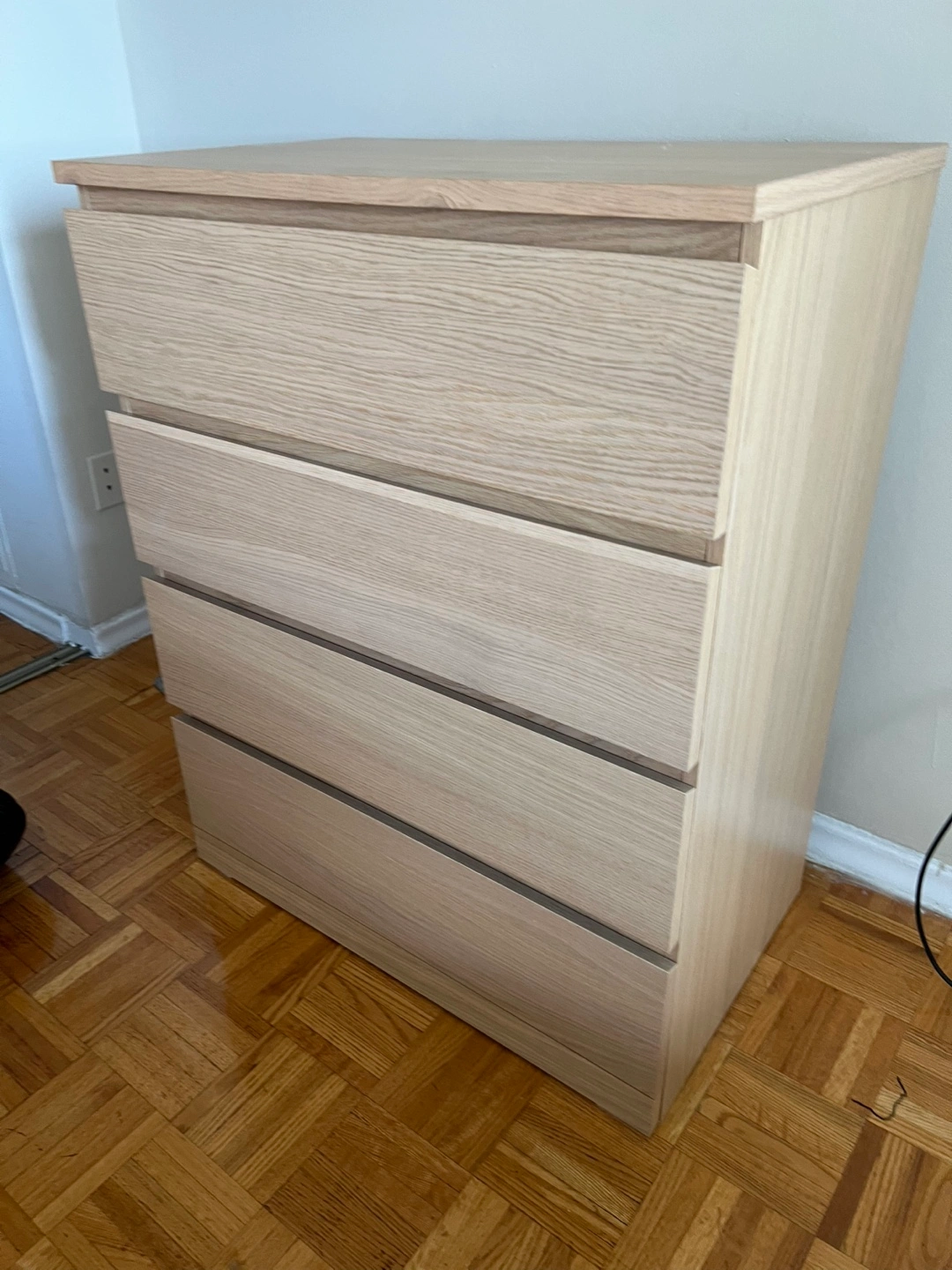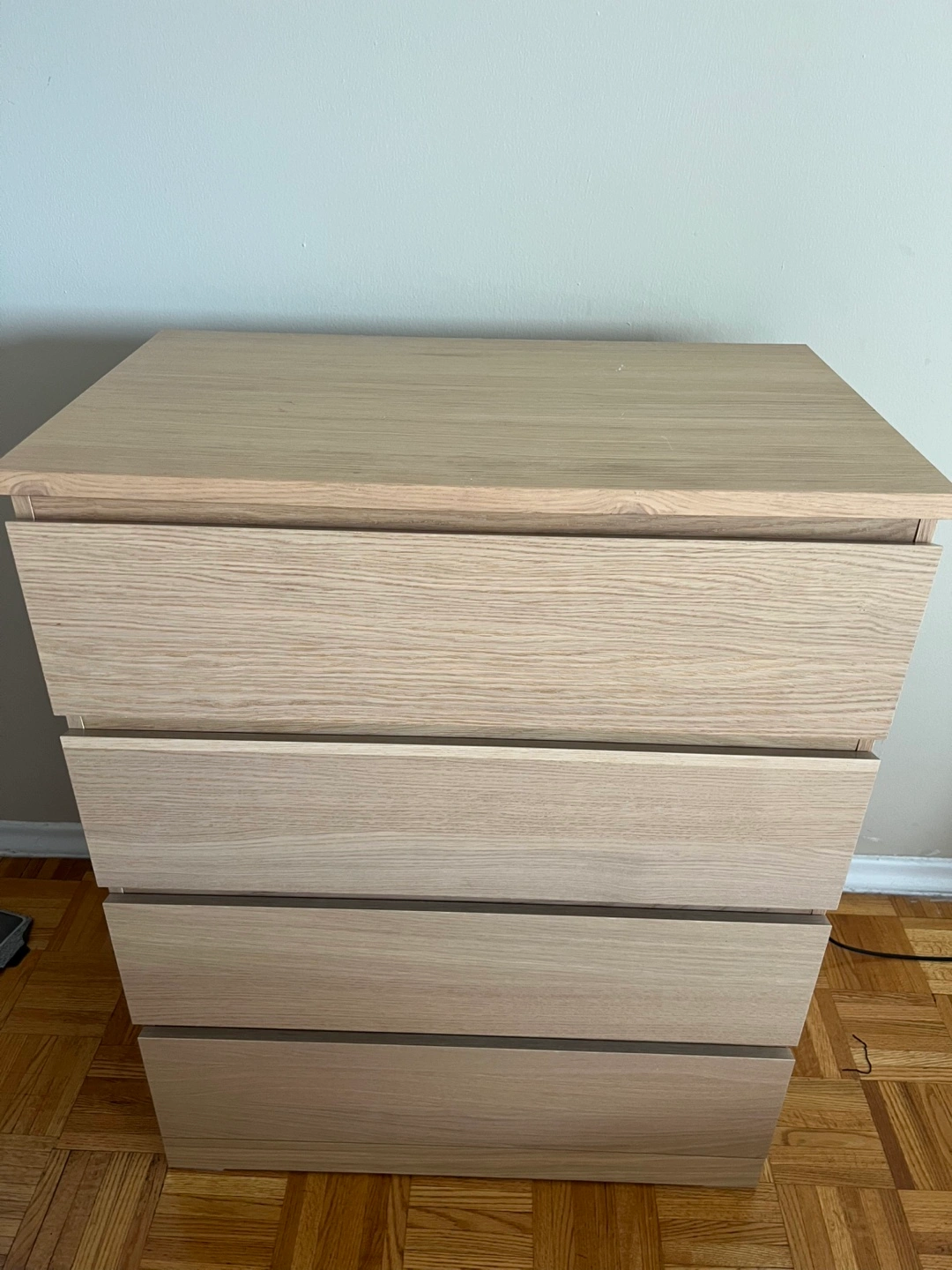 Selling a gently used IKEA Storklinta 4-drawer chest in great condition! It's perfect for adding storage to any bedroom or living space. The drawers slide smoothly and the overall piece is very sturdy. It's a beautiful, functional piece that will complement any decor