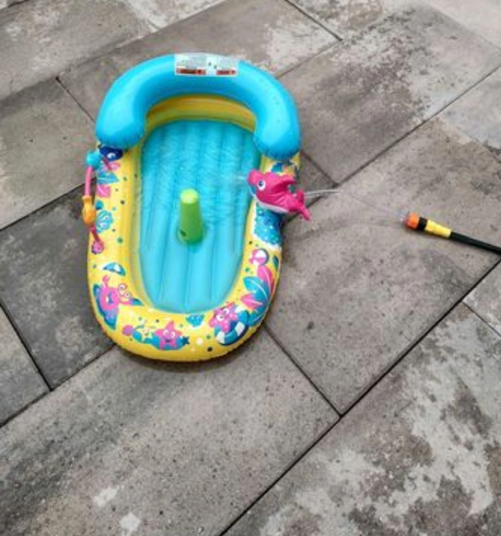 This is a Banzai Jr. Splash Discovery Activity Center! It's a fun little pool for kids with a cute design. It's in great condition and ready for some summer fun!