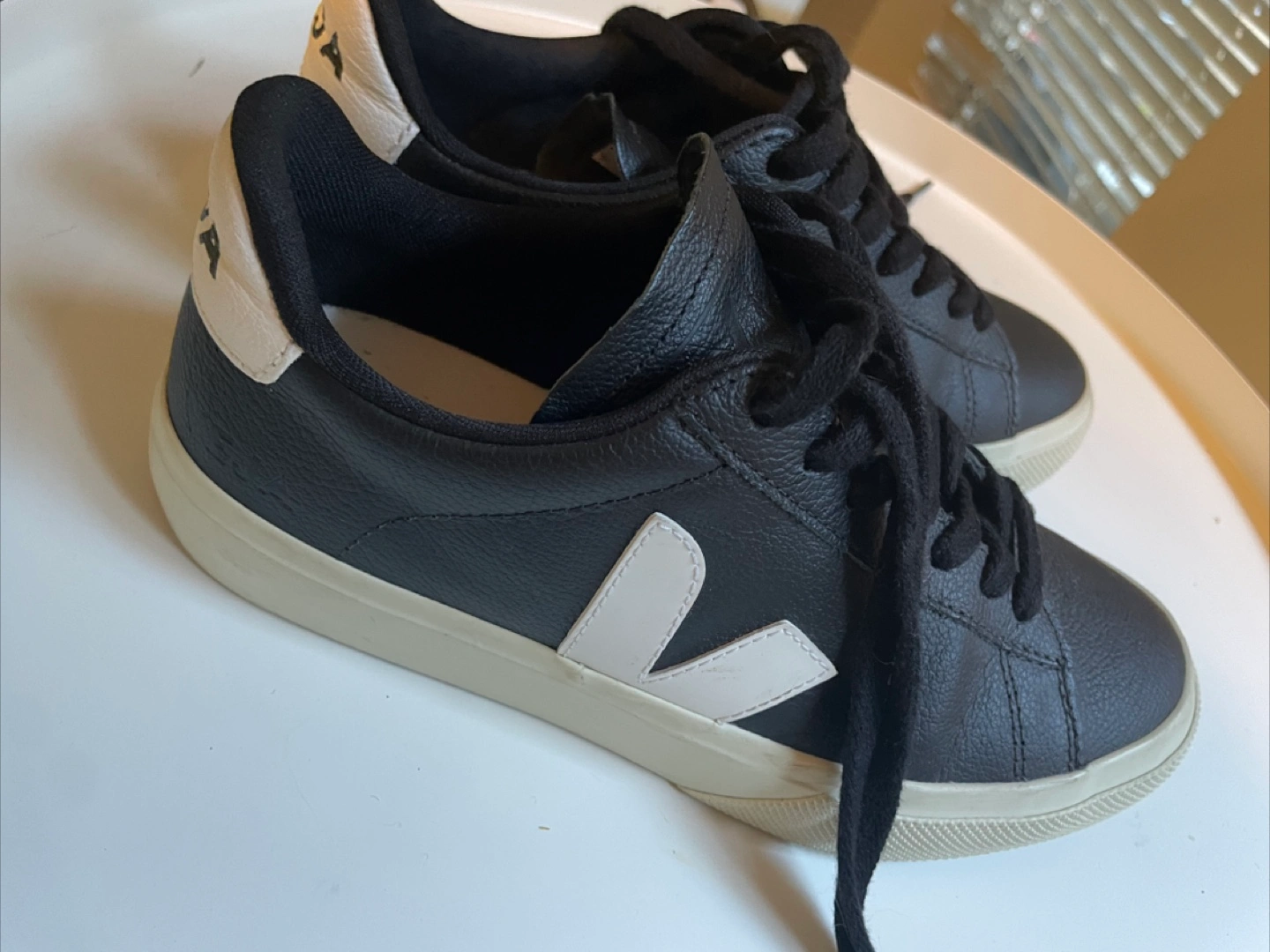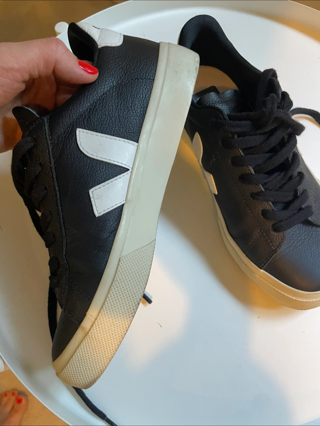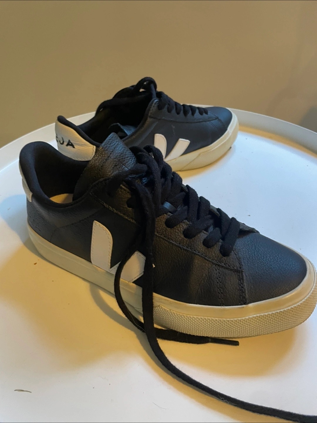 10Selling a pair of Veja Esplar sneakers in black and white leather. They're in good condition and ready for a new home!