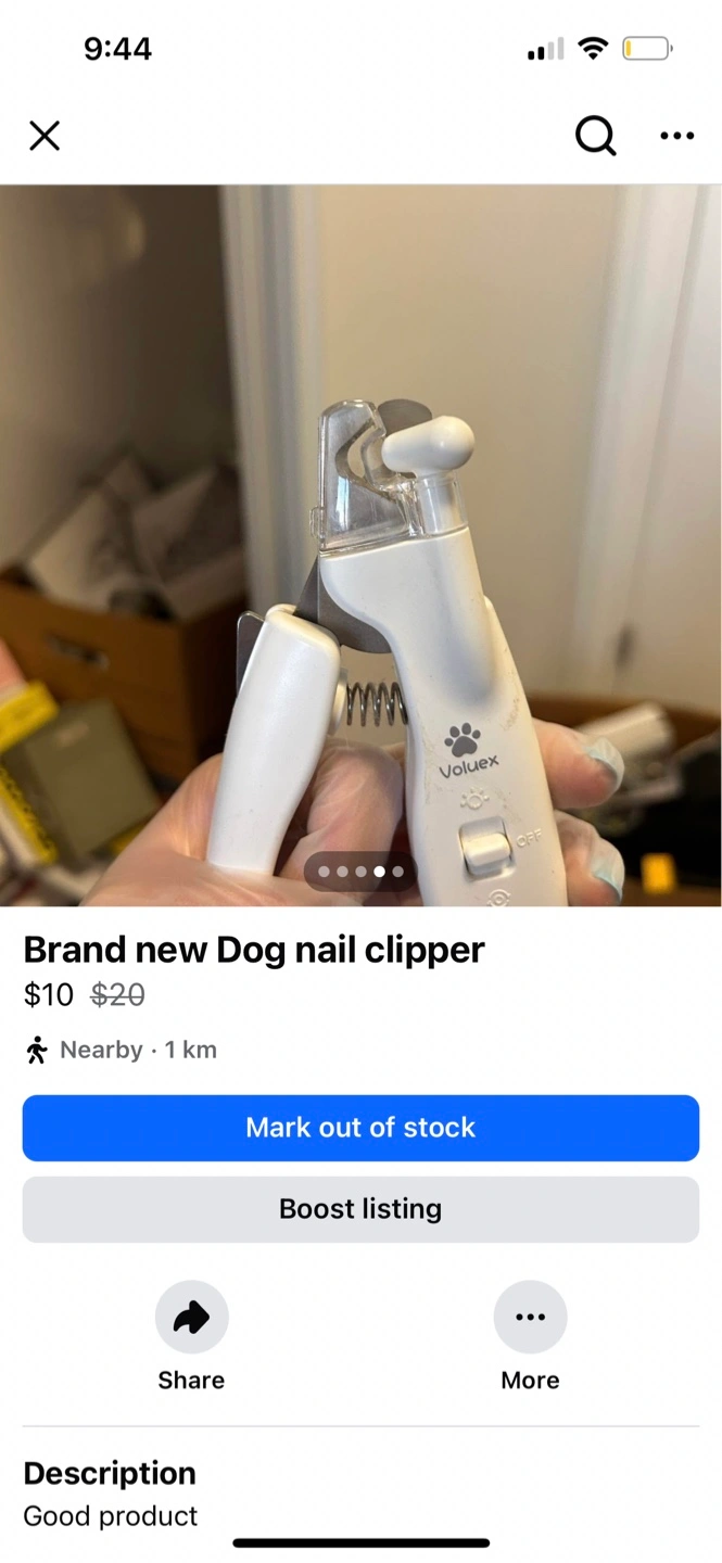 I have a brand new Voluex dog nail clipper for sale! It's in perfect condition and ready to use. Keep your furry friend's nails trimmed with ease