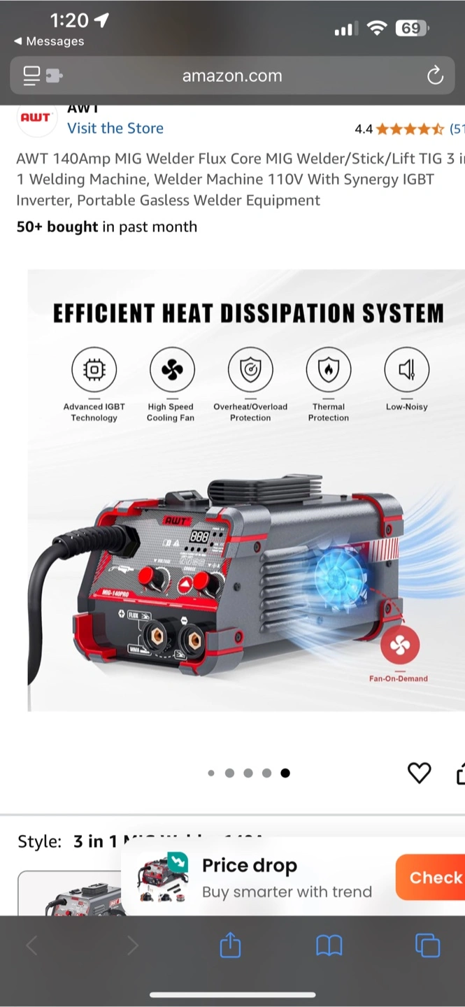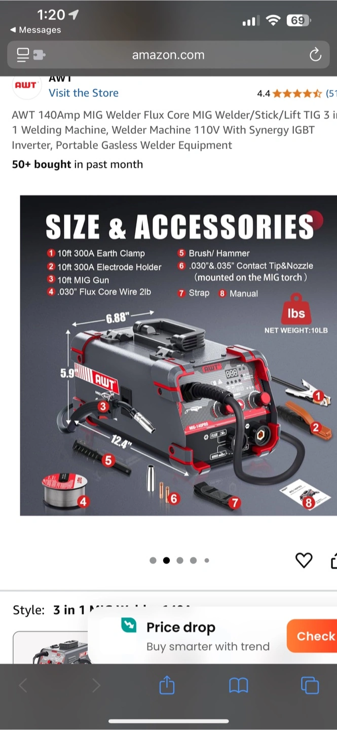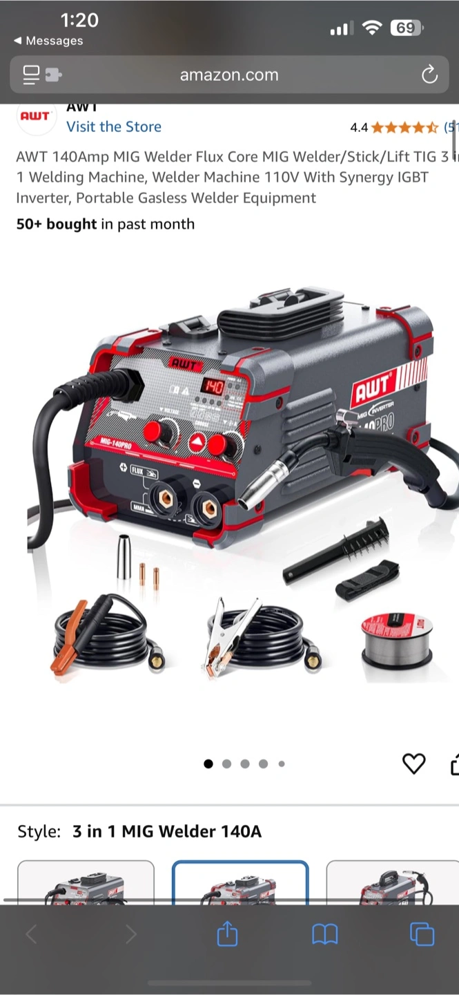 Selling an AWT 140Amp MIG Welder Flux Core MIG Welder/Stick/Lift TIG 3 in 1 Welding Machine. It's a 110V Inverter, portable gasless welder equipment.