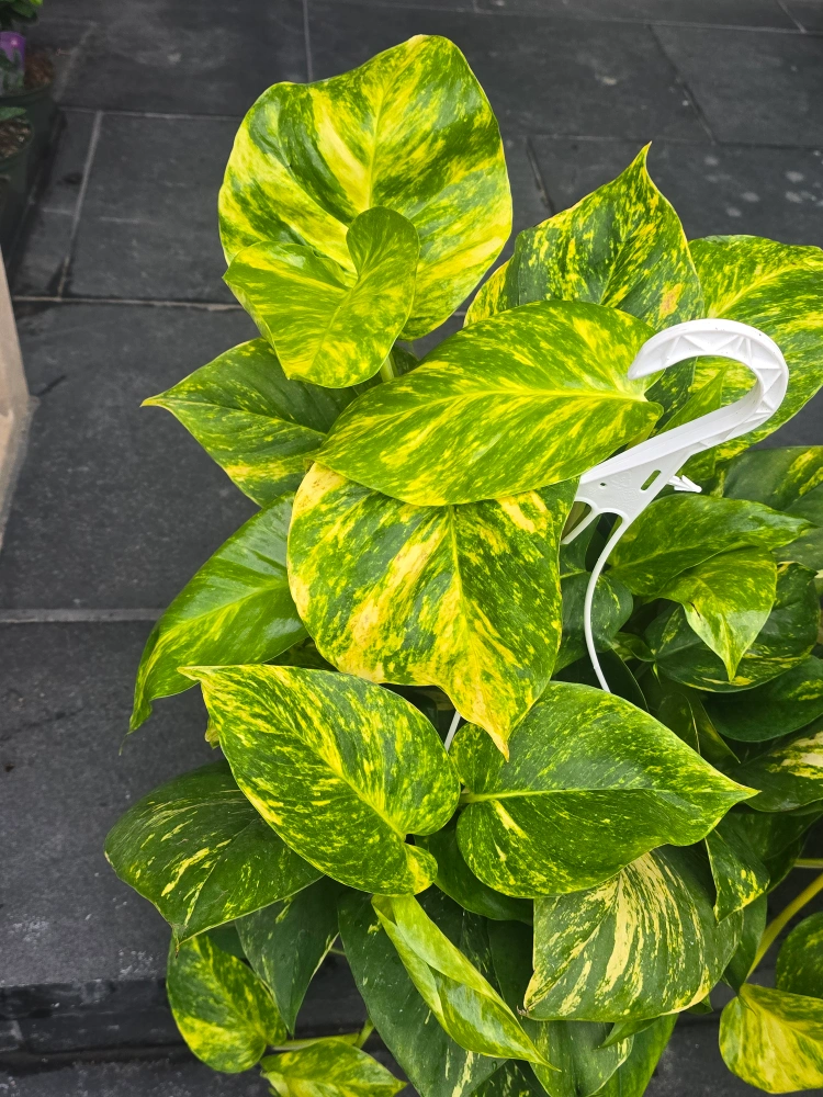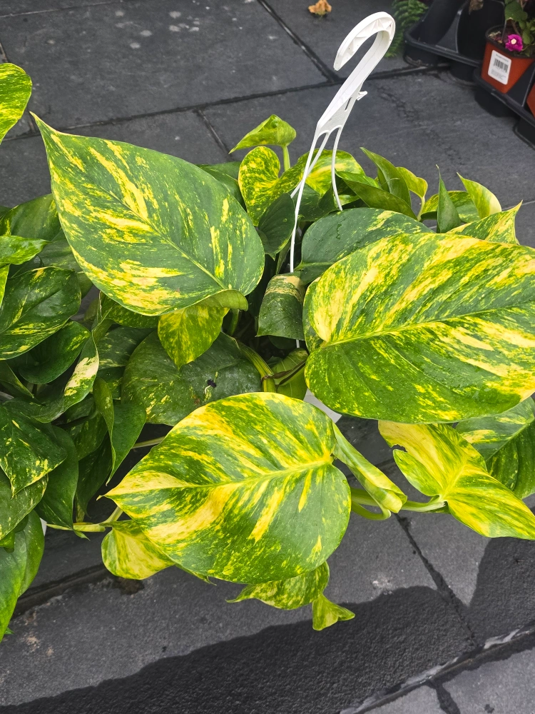 Selling a beautiful pothos plant in a hanging basket! It's got vibrant green and yellow leaves that'll brighten up any space. Perfect for adding a touch of nature to your home