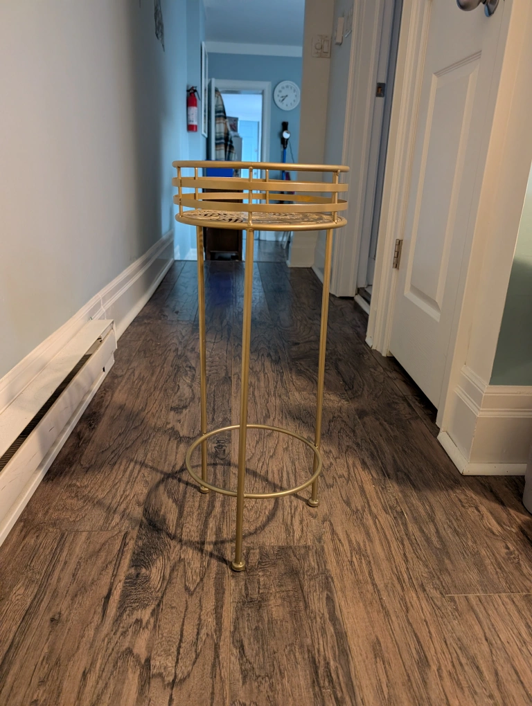 Selling a lovely gold metal plant stand! It's in great condition and would look perfect in any room. It's very light and easy to transport. I've only had it for a couple of months. No longer need it.
