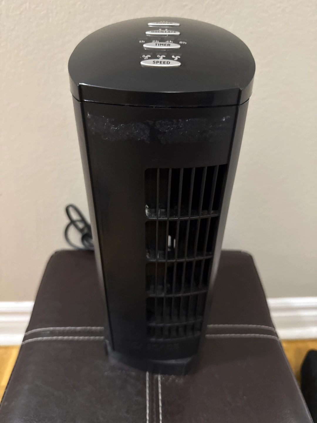 Selling a Blackstone oscillating tower fan in black. It features multiple speed settings and a timer function for convenience. Great for keeping cool during the summer months!
