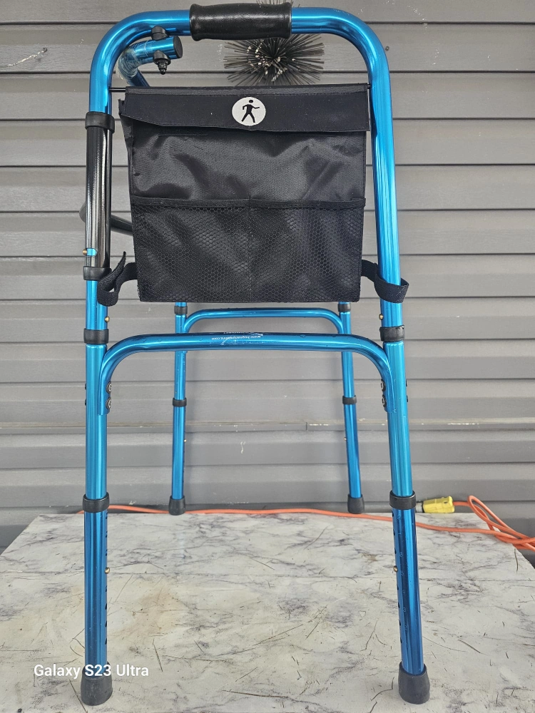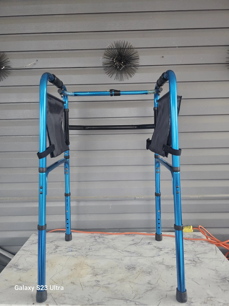 Selling a blue upright walker. It's in great condition and ready to help someone get around comfortably.