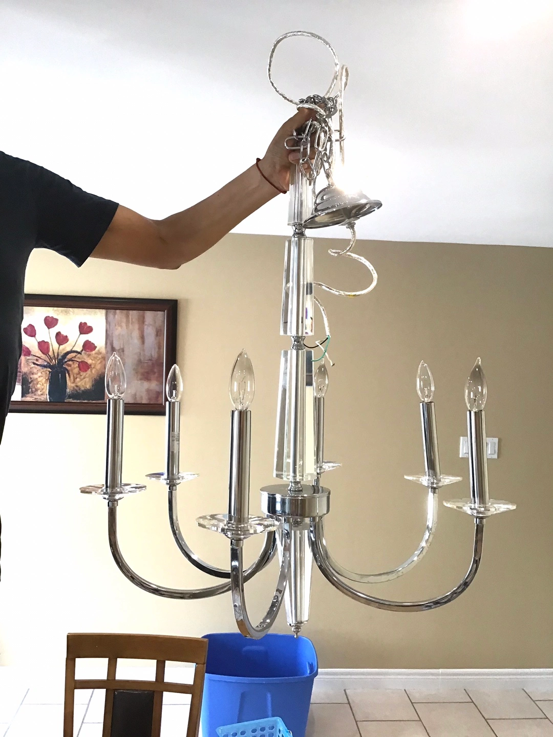 Selling a beautiful crystal chandelier! It features a silver finish and would add a touch of elegance to any room