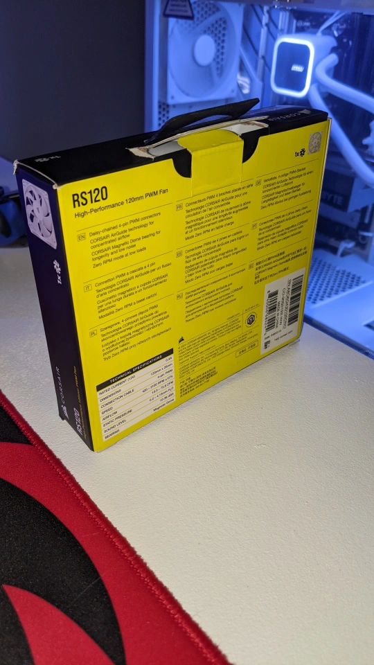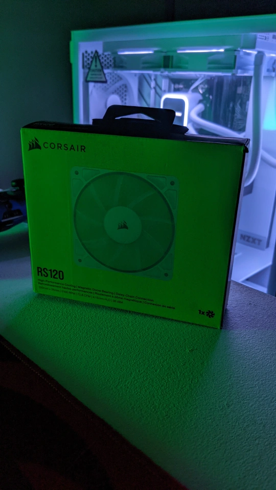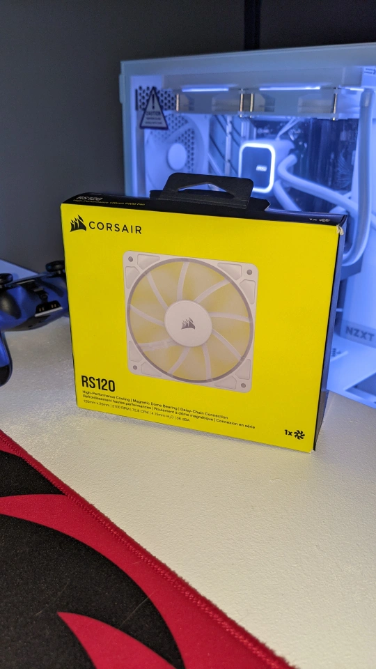 Selling a brand new Corsair RS120 High-Performance 120mm PWM Fan! It's still in the box and ready to keep your system cool. Comes with delayed-chanced 4-pole PWM connectors for Corsair iCUE and magnetic dome bearing for zero RPM mode at low loads