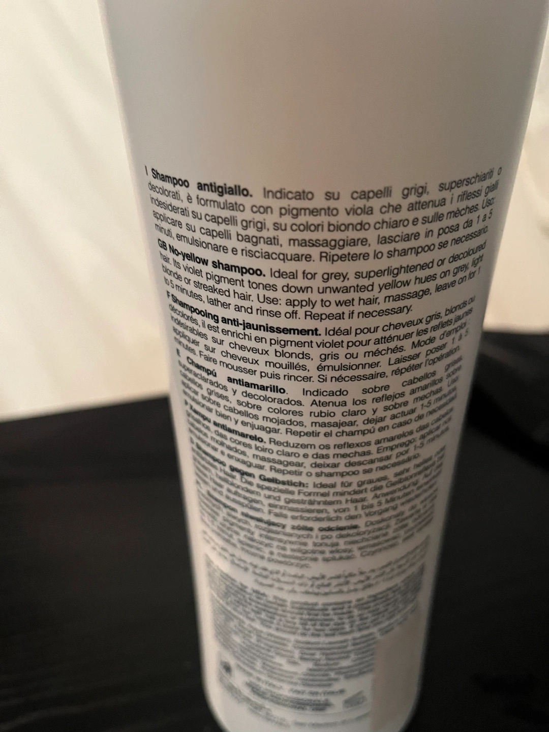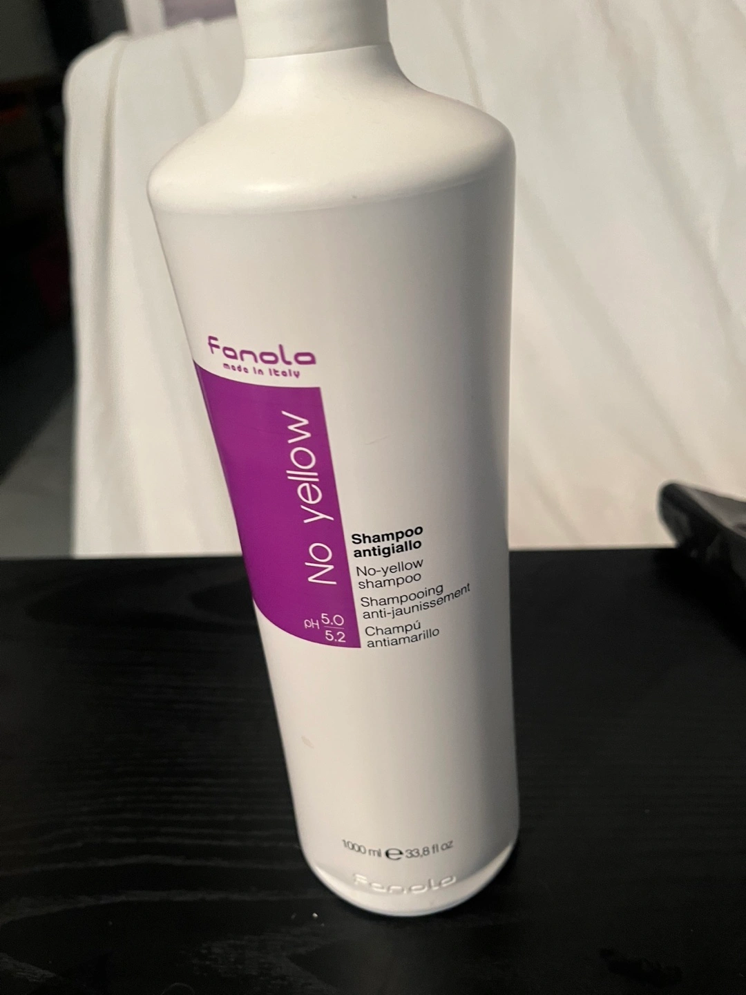 Selling a bottle of Fanola No Yellow shampoo! This shampoo is designed to neutralize unwanted yellow tones in grey, superlightened, or decolourized hair. It's a 1000ml bottle, so it'll last you a while