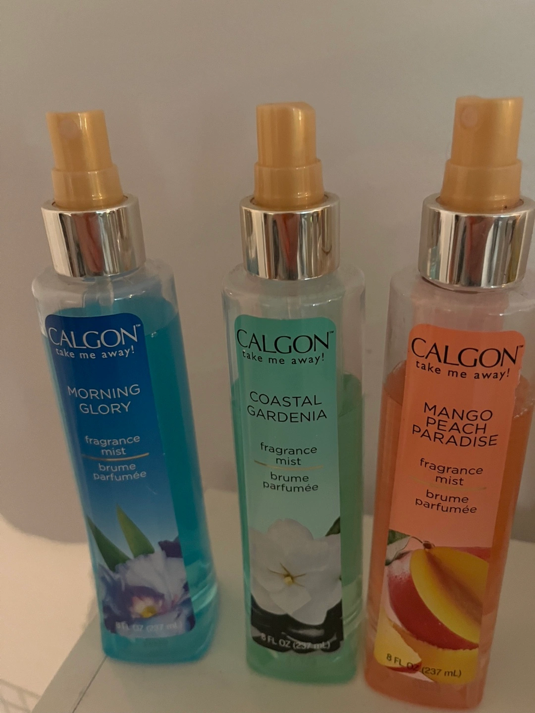 Selling a set of three Calgon fragrance mists! The scents included are Morning Glory, Coastal Gardenia, and Mango Peach Paradise.