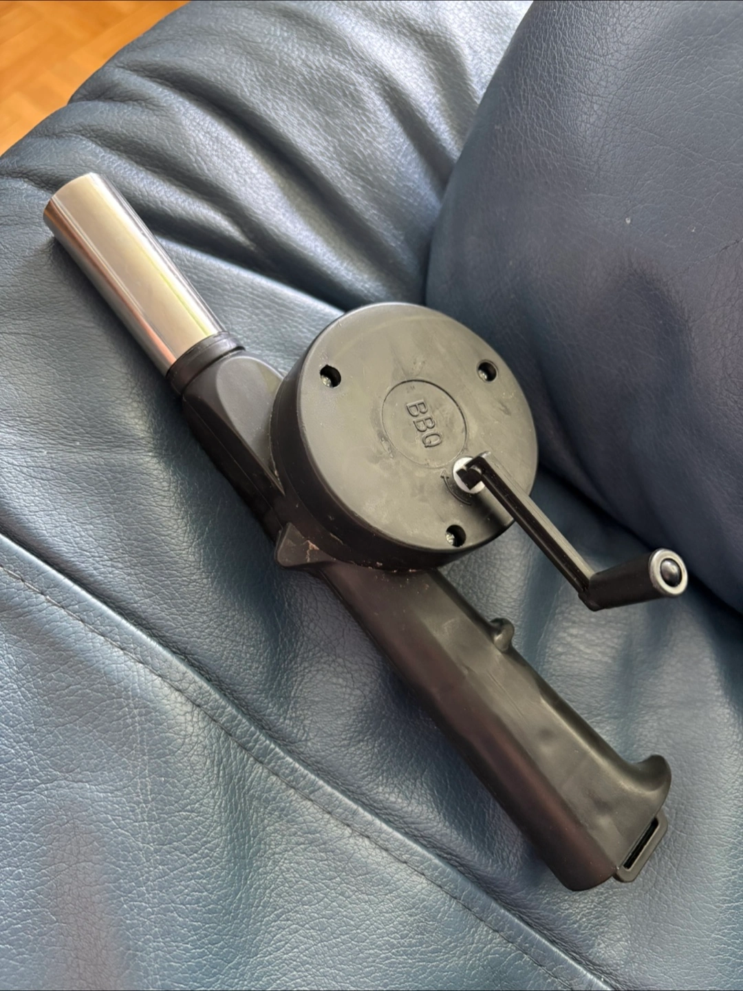BBQ hand crank air blower in good condition! Perfect for getting your grill or campfire going. It's lightweight and easy to use, making it a great addition to your BBQ tools