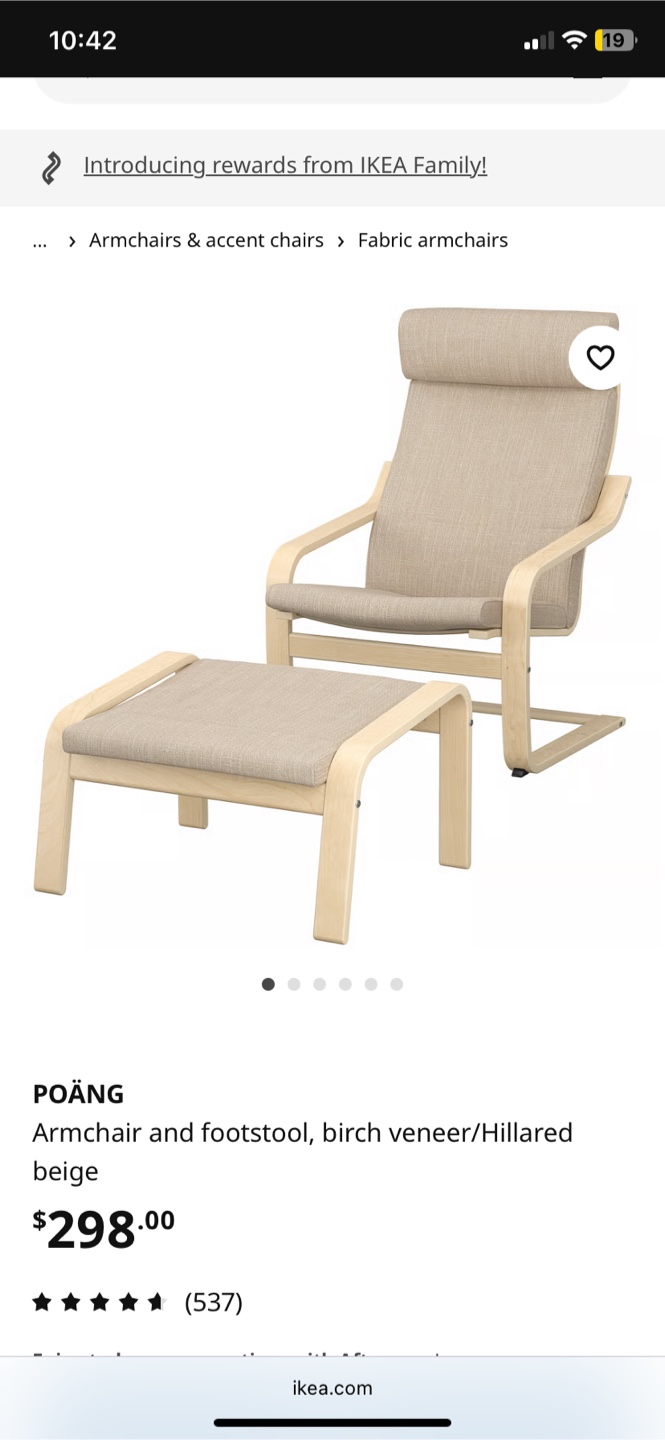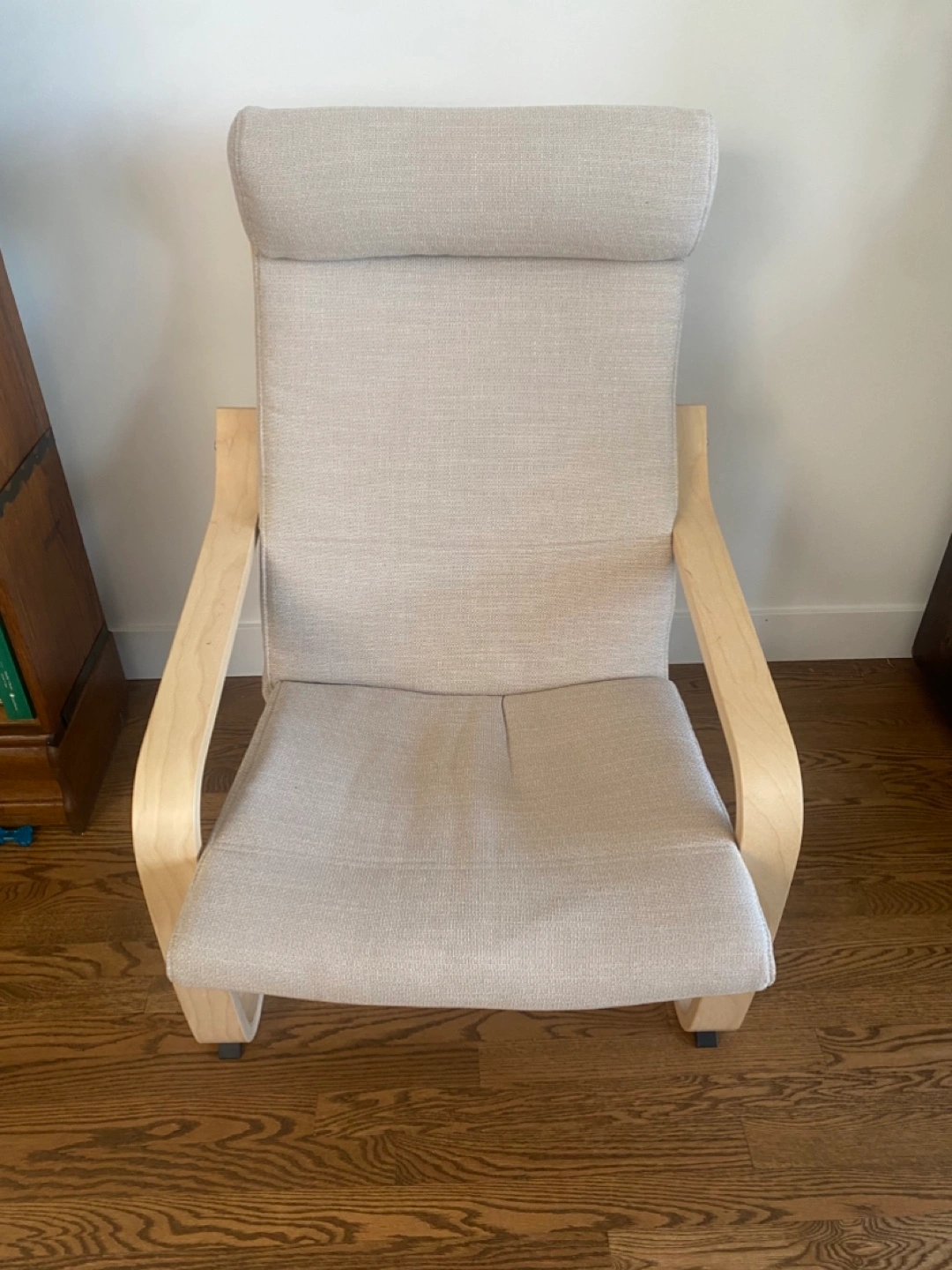 Selling a comfy IKEA POÄNG armchair in birch veneer with Hillared beige fabric. It's in great shape and ready for a new home! It does not come with the footstool!