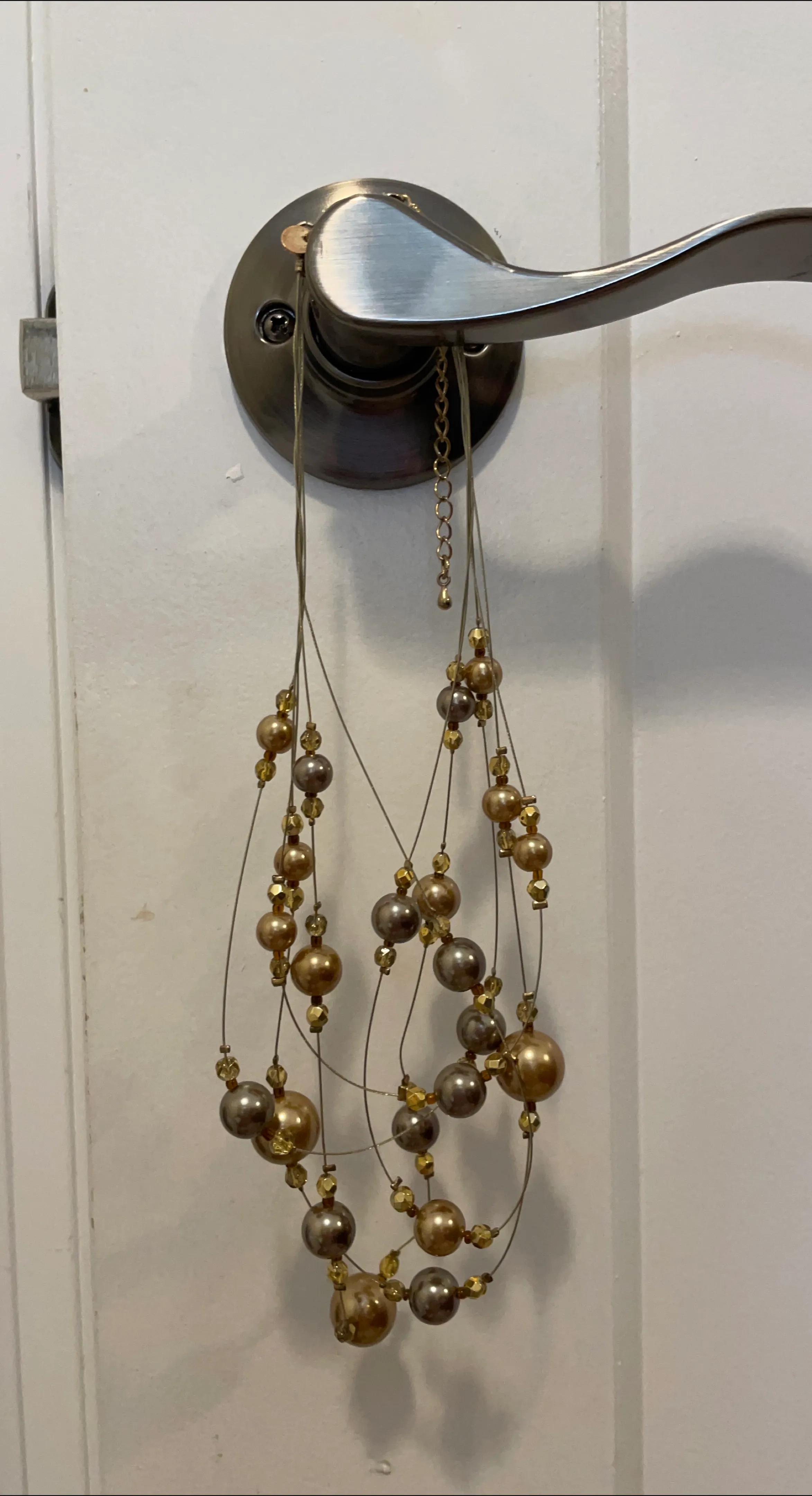 A lovely multi-strand necklace featuring gold and grey beads! It's a unique piece that would add a touch of elegance to any outfit