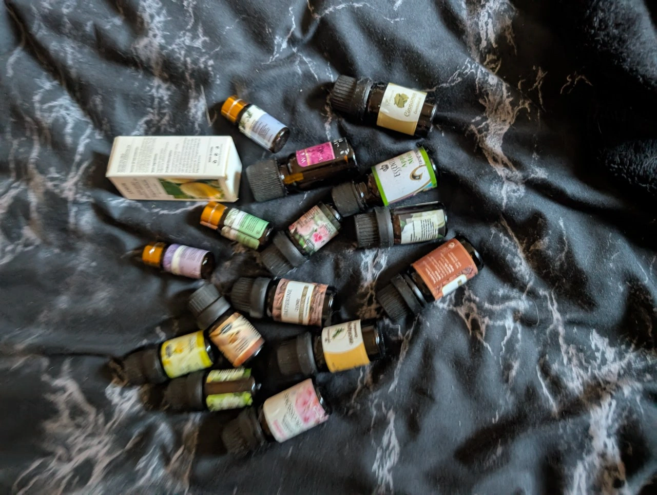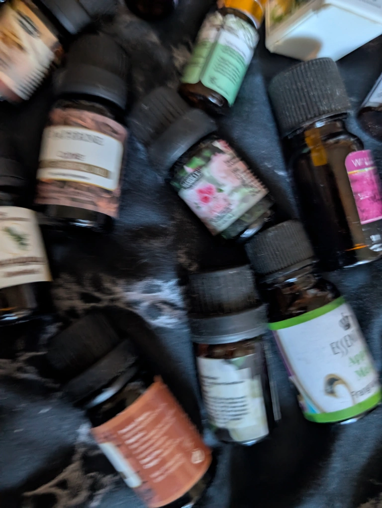 I have a variety of essential oils available. They come in different scents and are great for aromatherapy or other uses. Check out the photos to see the different types all new