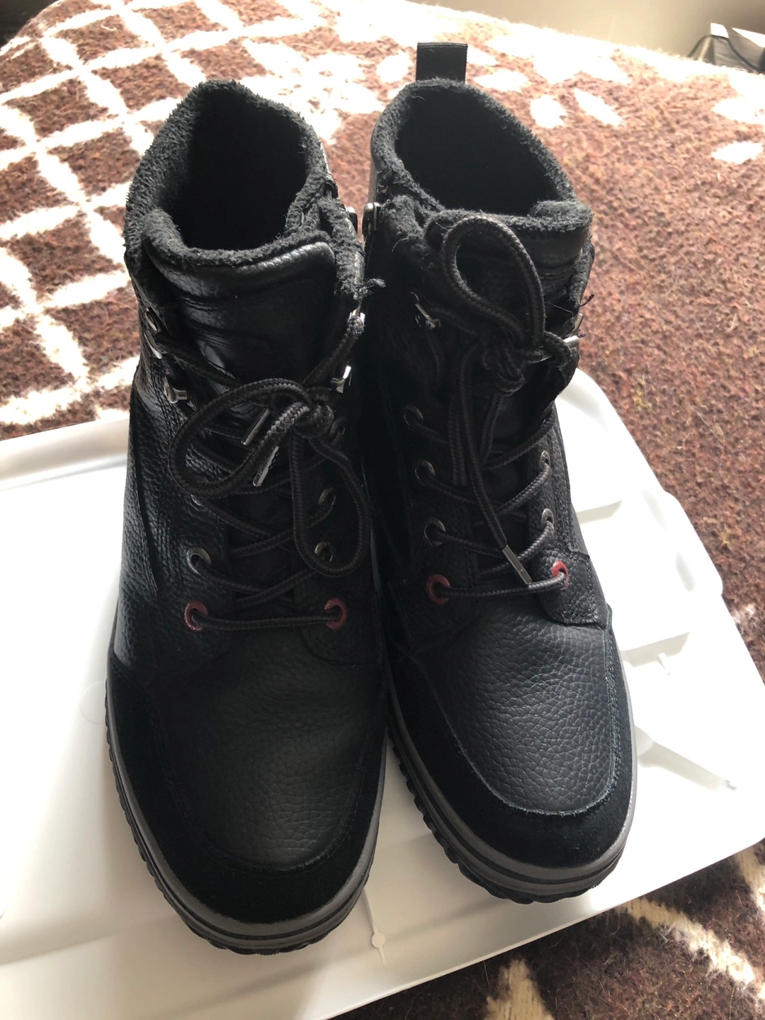 Selling a pair of Pajar ankle boots in black leather. They're in great condition and perfect for the colder weather! I wore these boots 2 times last winter. Less than 30 minutes walk each time. Not in snow tho. Kept in plastic container to minimize damage and keep pristine