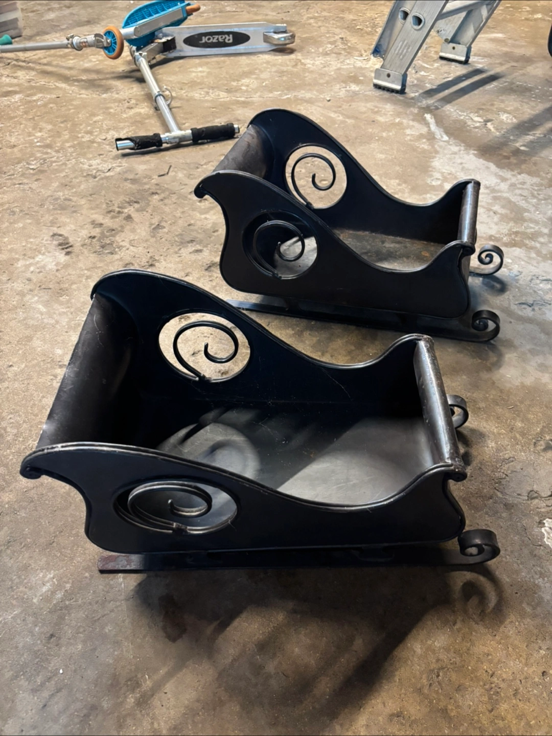 Selling a set of two metal decorative sleighs. They're perfect for adding a touch of festive charm to your home this holiday season! They're in great condition and ready to go to a new home