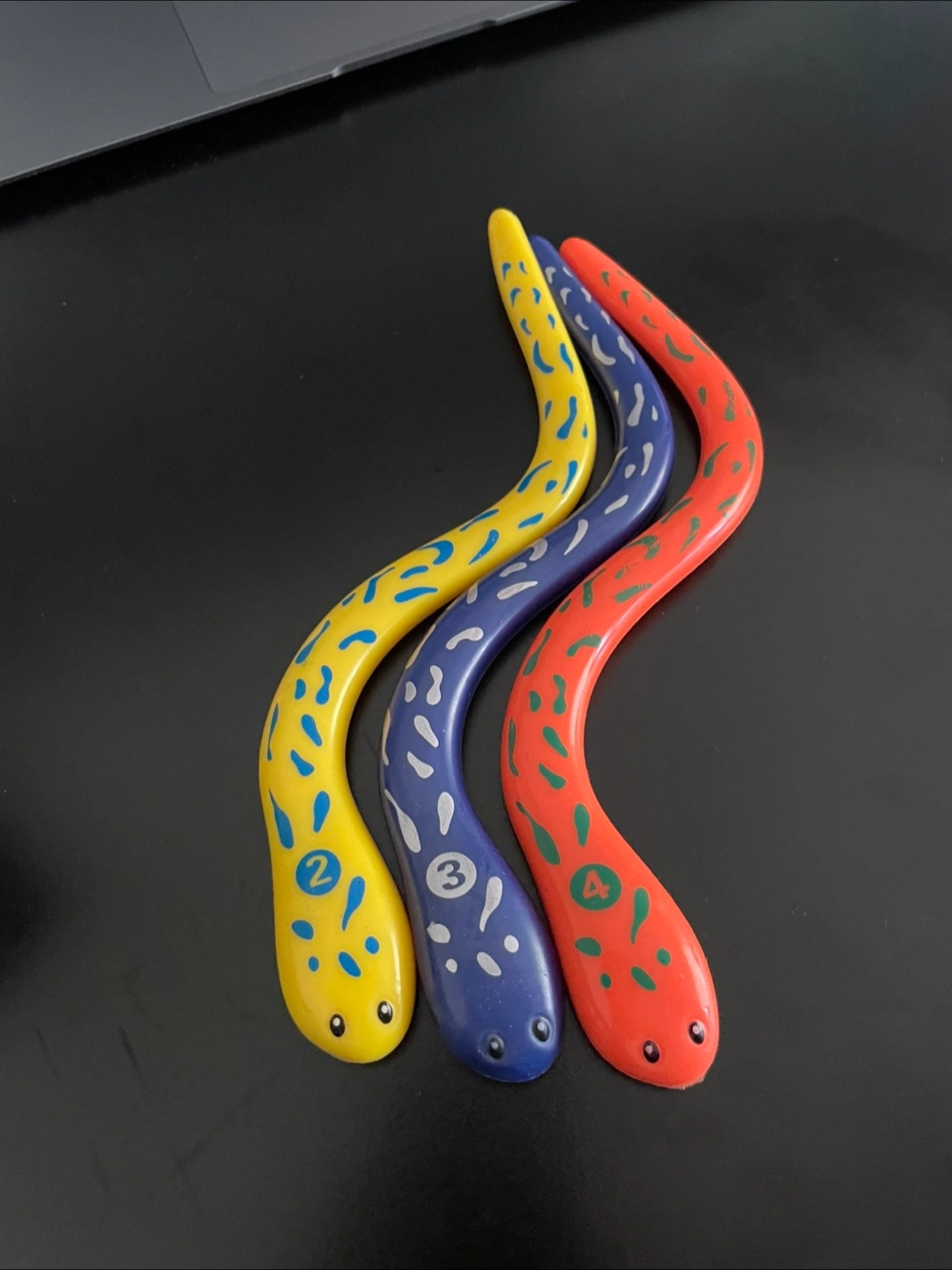 A set of three bendy snakes! They're in great shape and come in yellow, blue, and red.