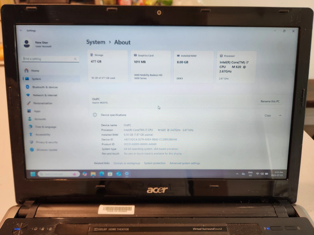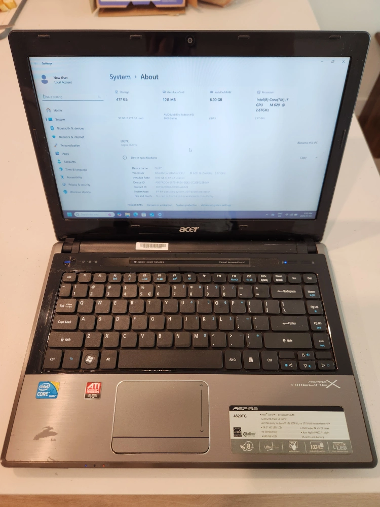 Selling a very old Acer Aspire 4820TG laptop.
