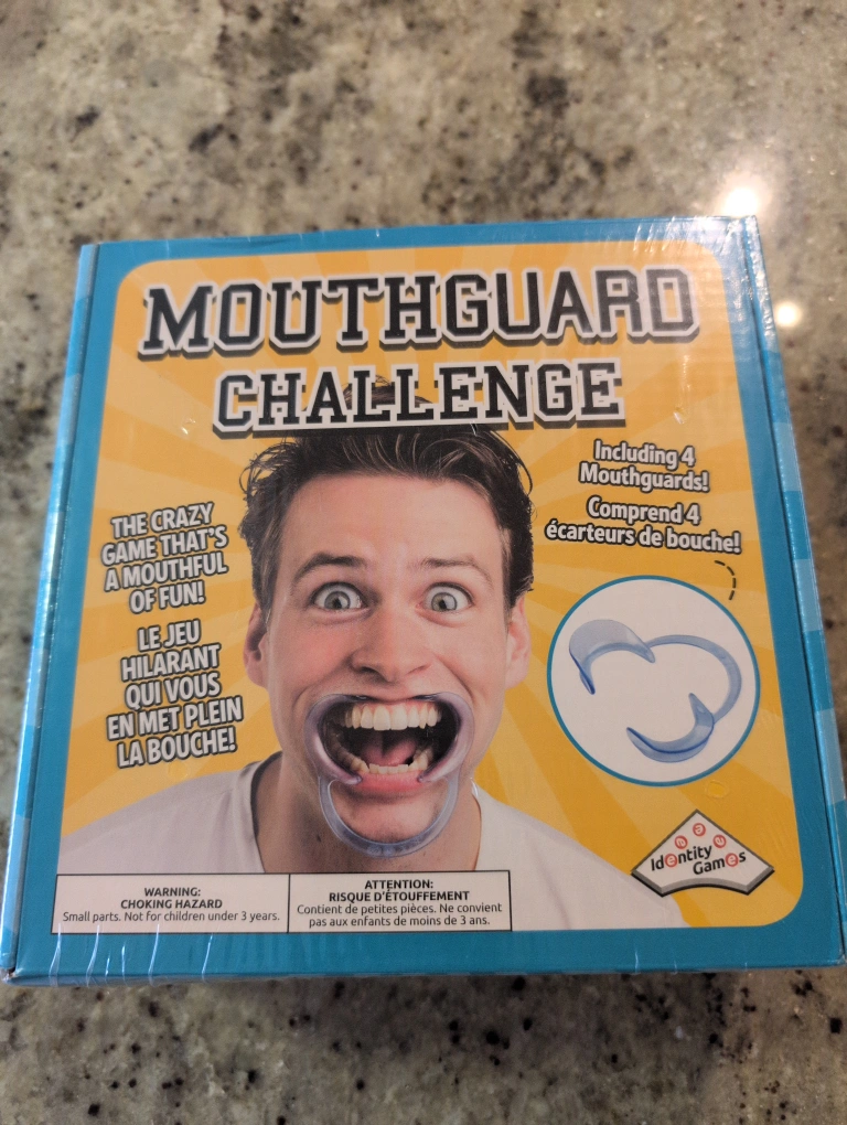 Selling a brand new, in-box Mouthguard Challenge game! This crazy game is a mouthful of fun and includes 4 mouthguards. Perfect for family game night!