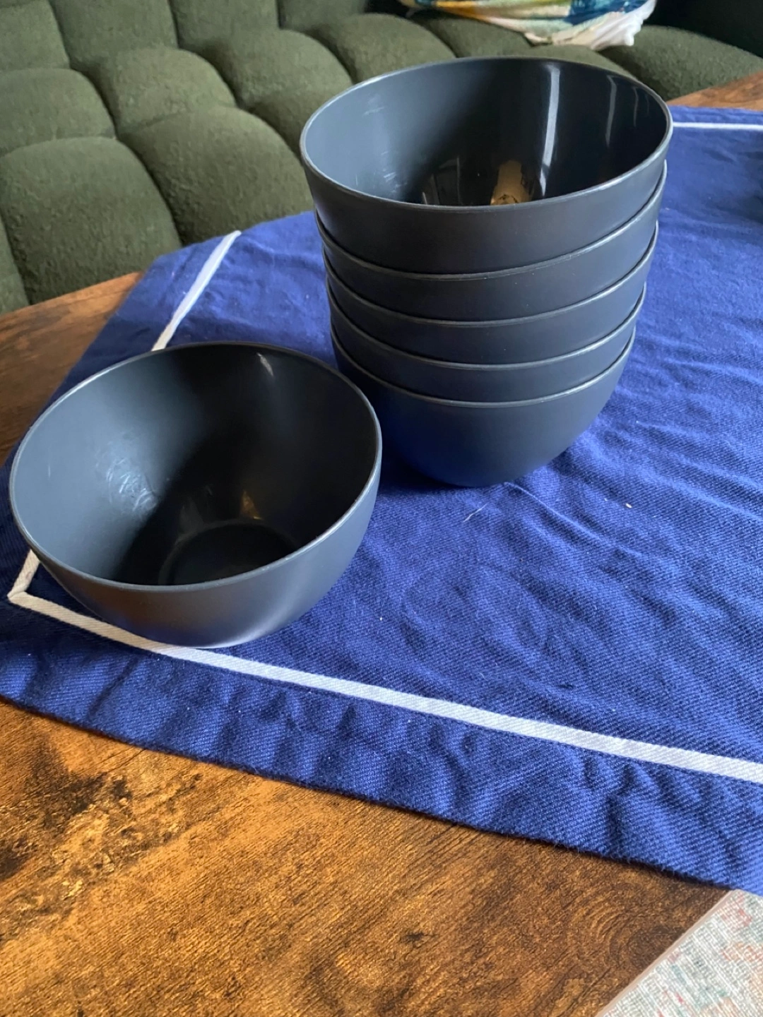 Selling a set of six gray bowls! They are in great condition and ready for a new home. Perfect for everyday use or special occasions.