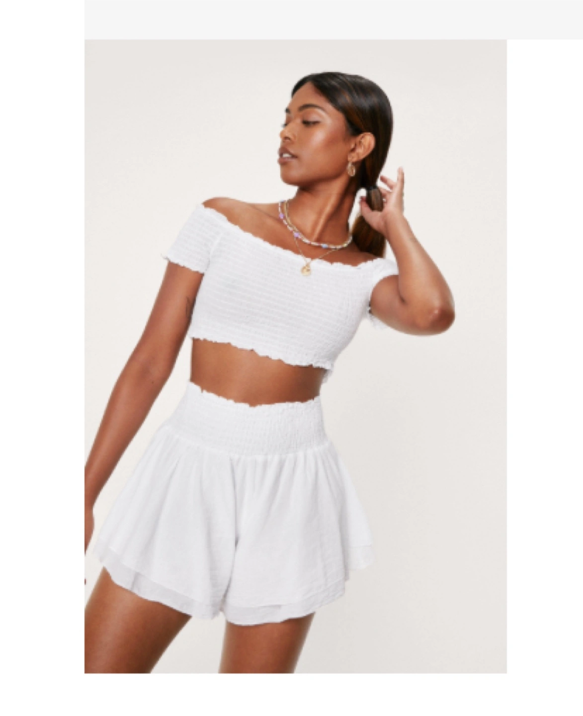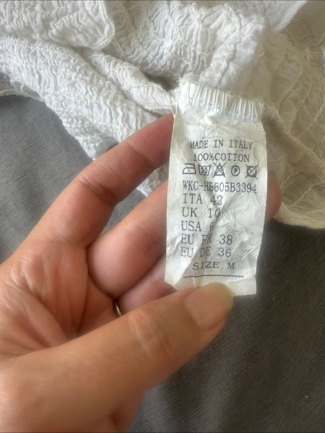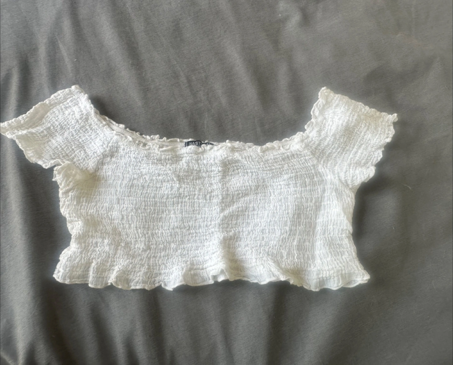 Selling a cute NASTIGAL off-shoulder top in white! It's made of 100% cotton and is a size M. Perfect for a casual summer look! Made in Italy.
